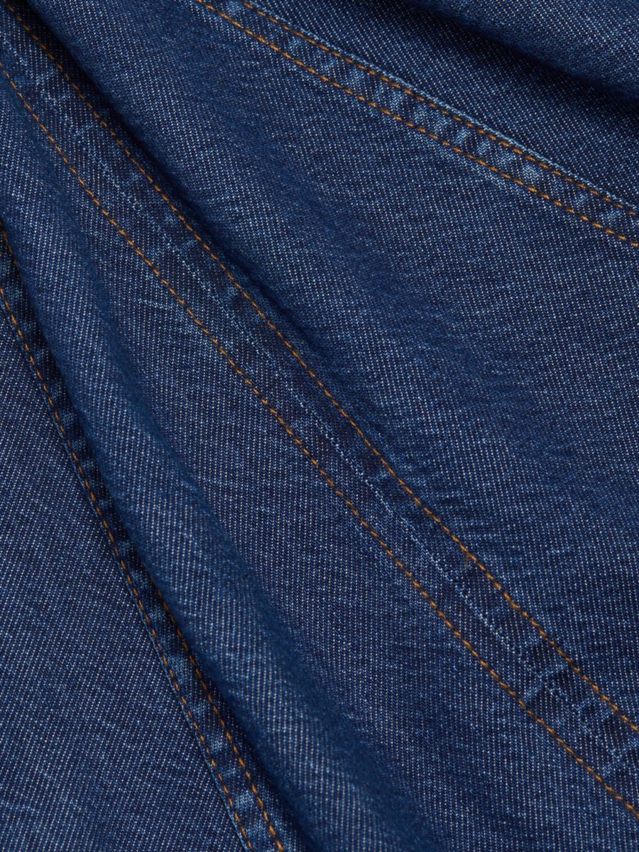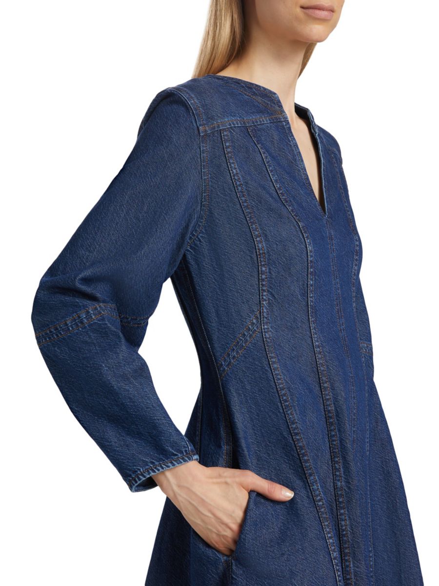 Джинсовое мини-платье Vray от Tanya Taylor А-силуэта с плоскими швами и длинными рукавами-блузон.