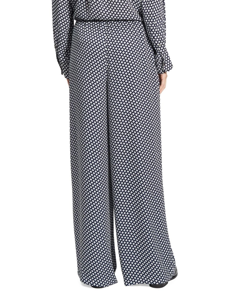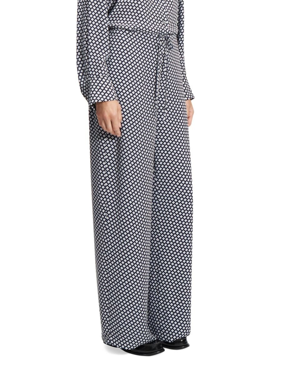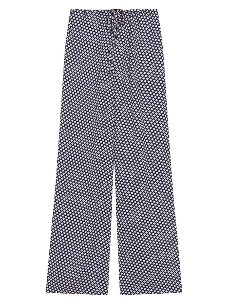 Брюки Theory с геометрическим принтом и завязками на кулиске отличаются прямым силуэтом и комфортом.