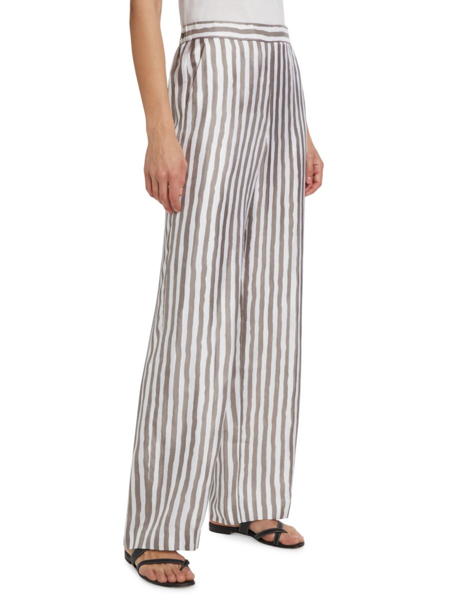 Облегающие брюки Theory сшиты из шелка и украшены полосатым узором.