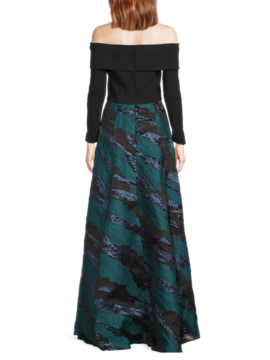 Платье с открытыми плечами Teri Jon by Rickie Freeman, цвет Black Teal 25 361₽