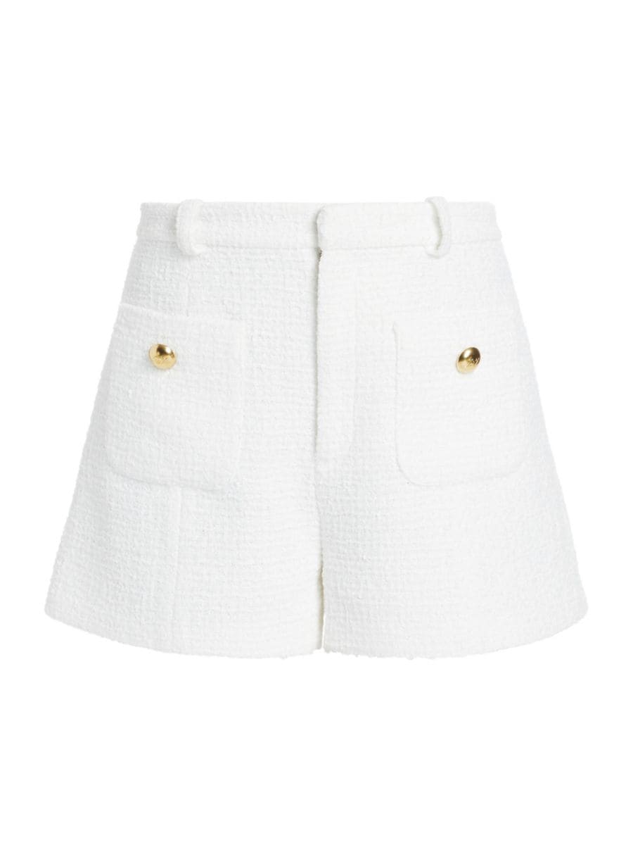 Твидовые шорты Auden от Cinq à Sept отличаются высокой талией и фирменными золотистыми пуговицами.