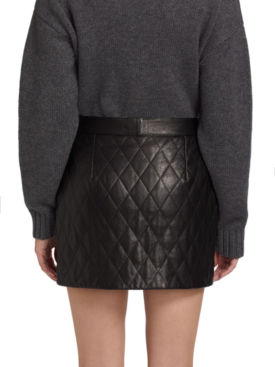Мини-юбка Frame прямого кроя выполнена из мягкой стеганой кожи.