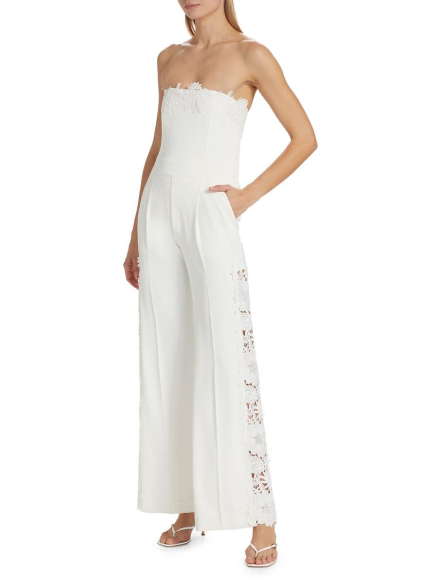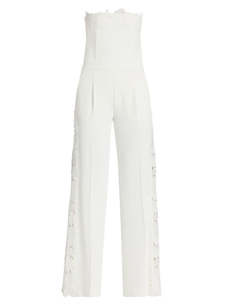 Комбинезон Ebony от Generation Love выполнен из легкого крепа без бретелек, украшен изысканной отделкой из цветочного кружева на груди и боковых швах и переходит в свободный силуэт с широкими штанинами. Боковые косые карманы придают этой модели дополнительный комфорт.