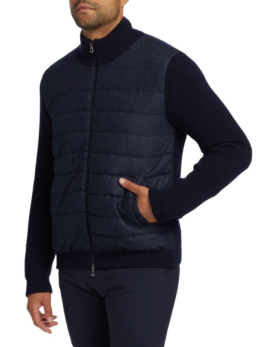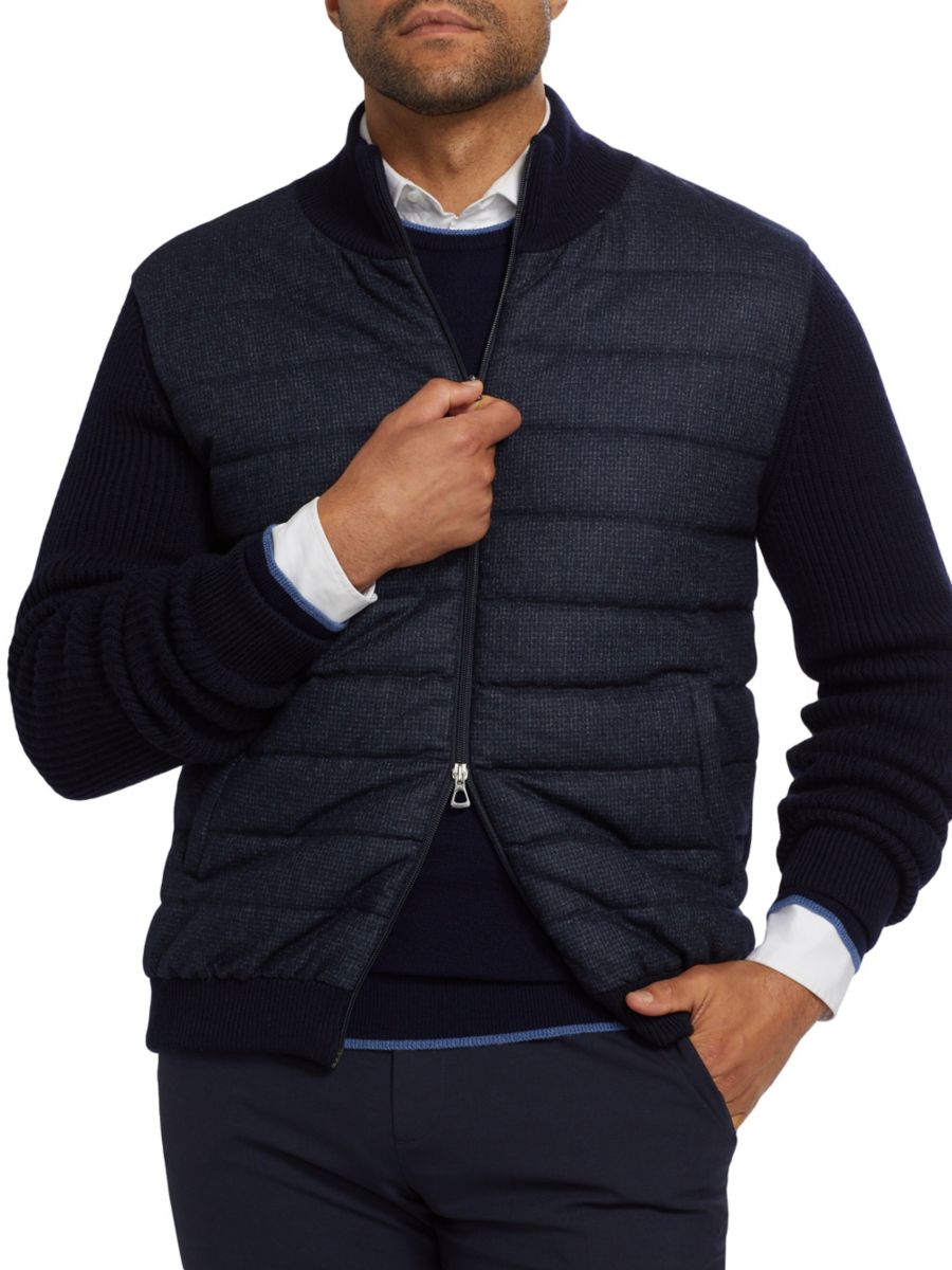 ЭКСКЛЮЗИВНО В SAKS OFF FIFTH. Куртка в стиле микс-медиа от Saks Fifth Avenue отличается утепленным лифом из смесовой шерсти и трикотажными рукавами из шерстяной ткани. Ребристая трикотажная отделка на воротнике-стойке, манжетах и подоле придает дополнительную структуру этой модели с застежкой-молнией спереди.