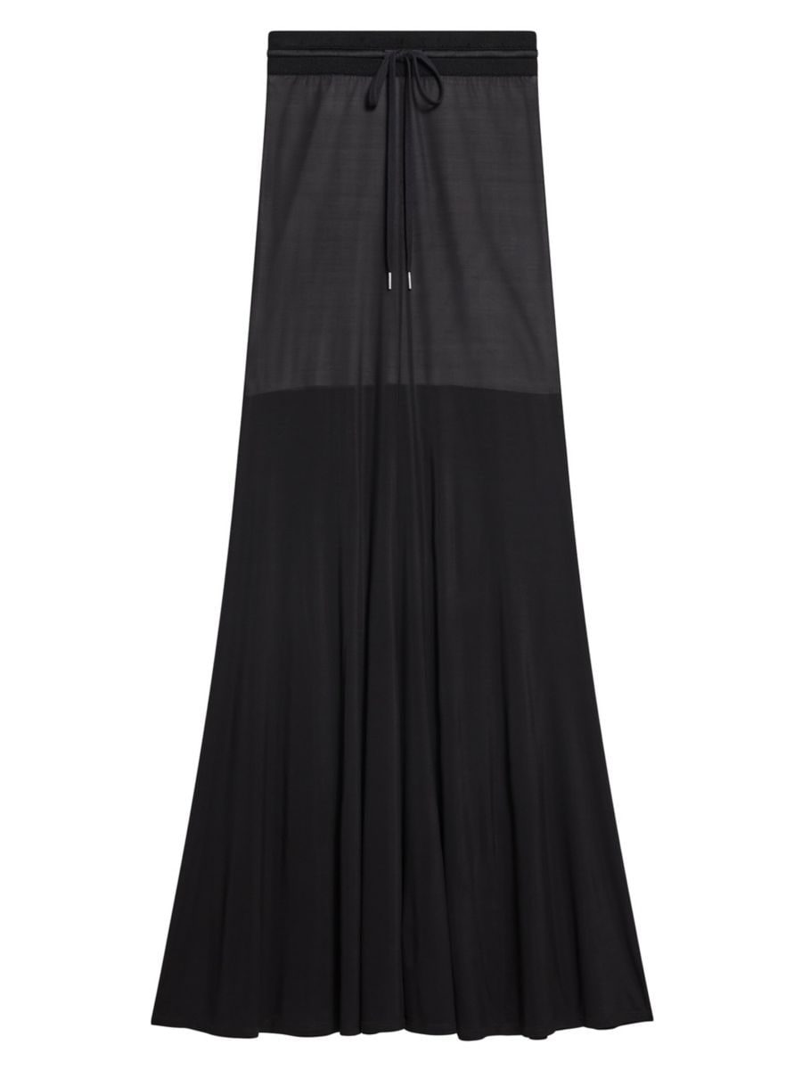 Эта юбка макси от Helmut Lang, сшитая вручную, состоит из полупрозрачных и непрозрачных вставок и пояса на шнурке.
