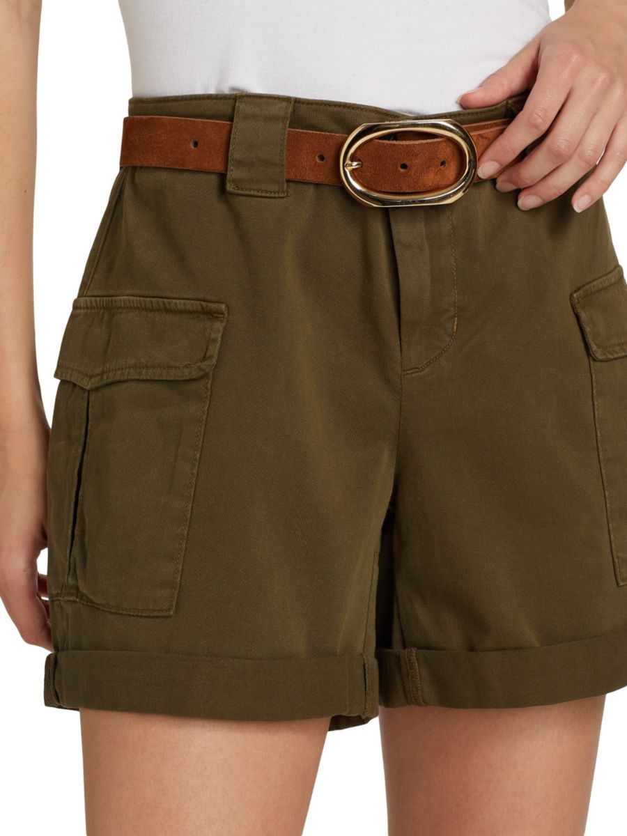 Универсальные шорты Abel от L'AGENCE из плотного хлопка со шлевками для ремня, боковыми карманами с клапанами и манжетой на подоле.