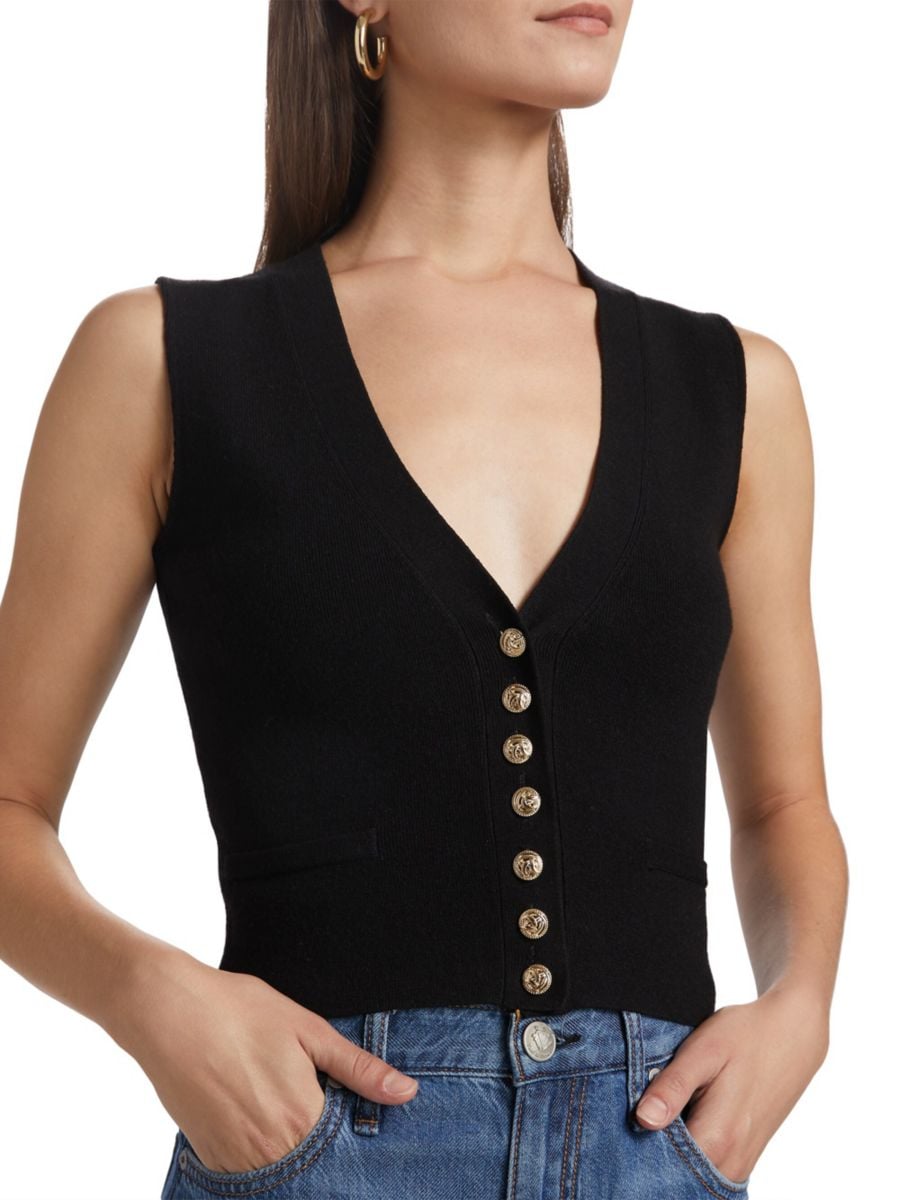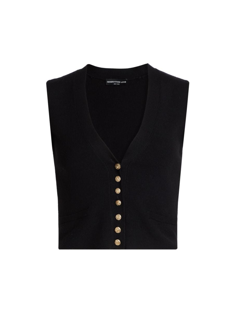 Приталенный жилет Mailan из трикотажной резинки от Generation Love с глубоким V-образным вырезом и застежкой на пуговицы спереди.