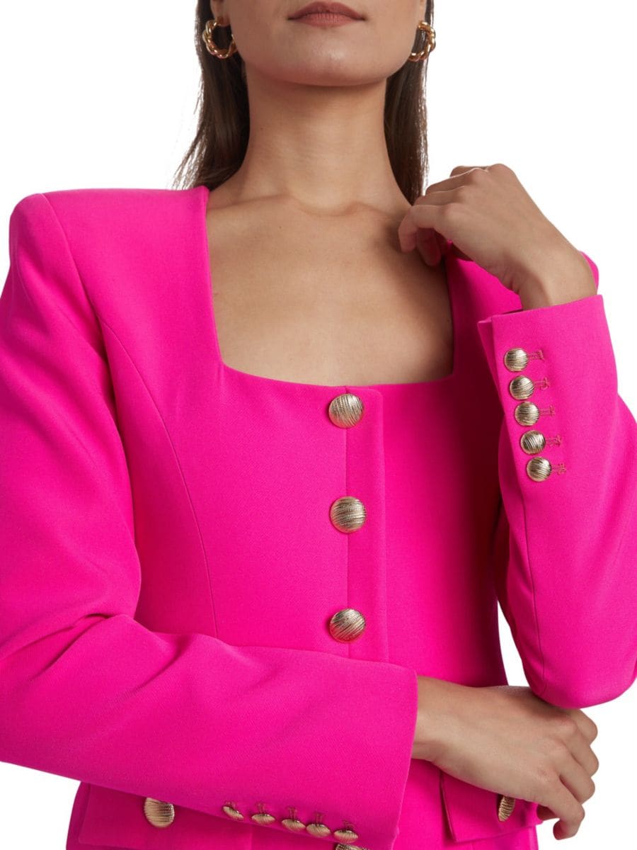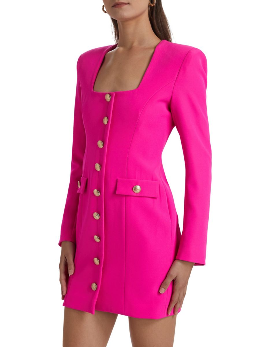 Мини-платье Mellie от Generation Love с квадратным вырезом, подплечниками и длинными рукавами застегивается на пуговицы.