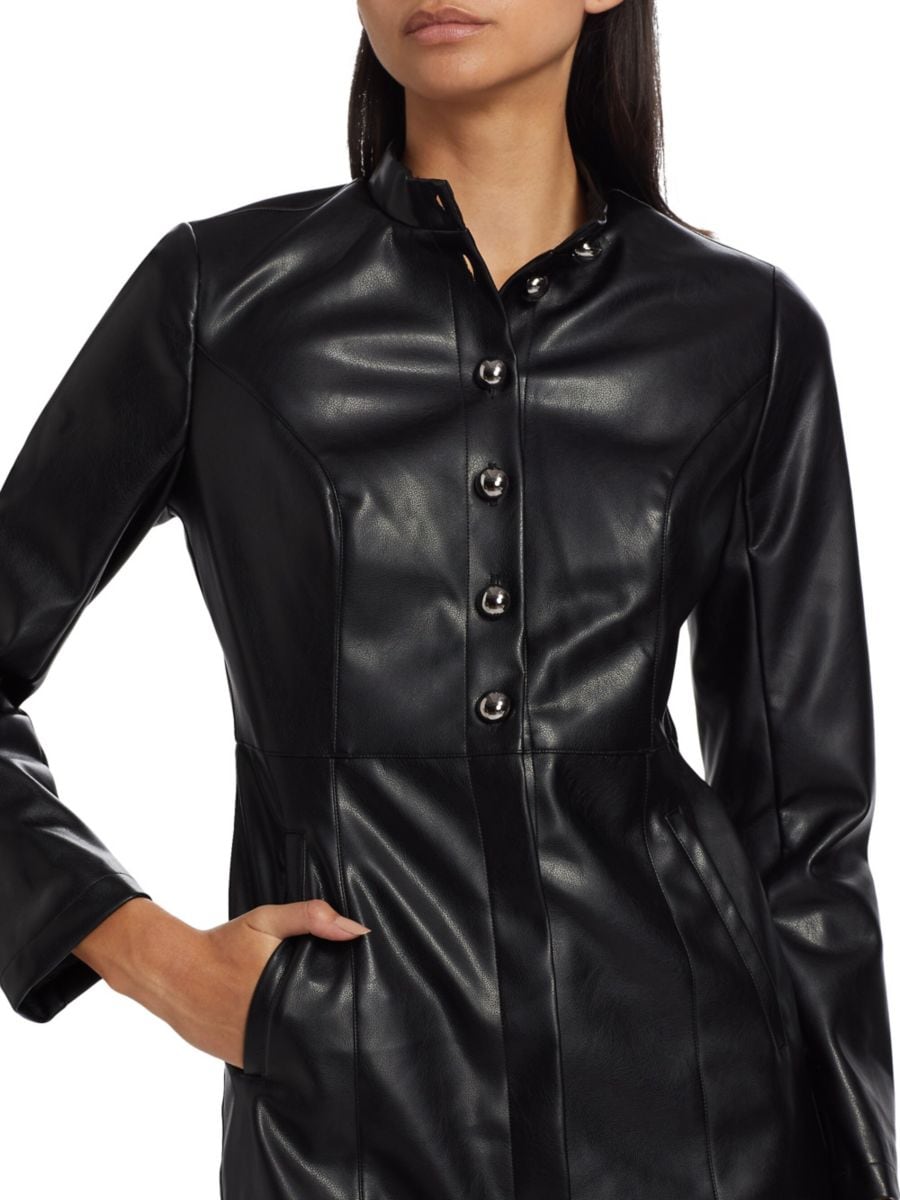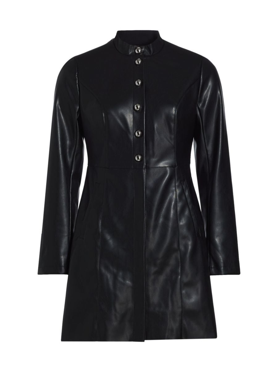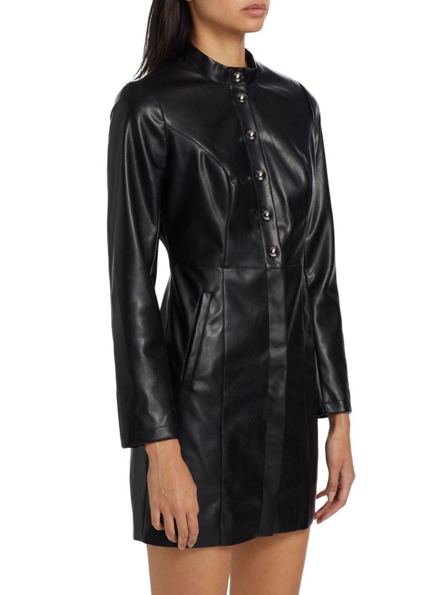 Мини-платье-рубашка If Only Studio выполнено из искусственной кожи и декорировано строчками.