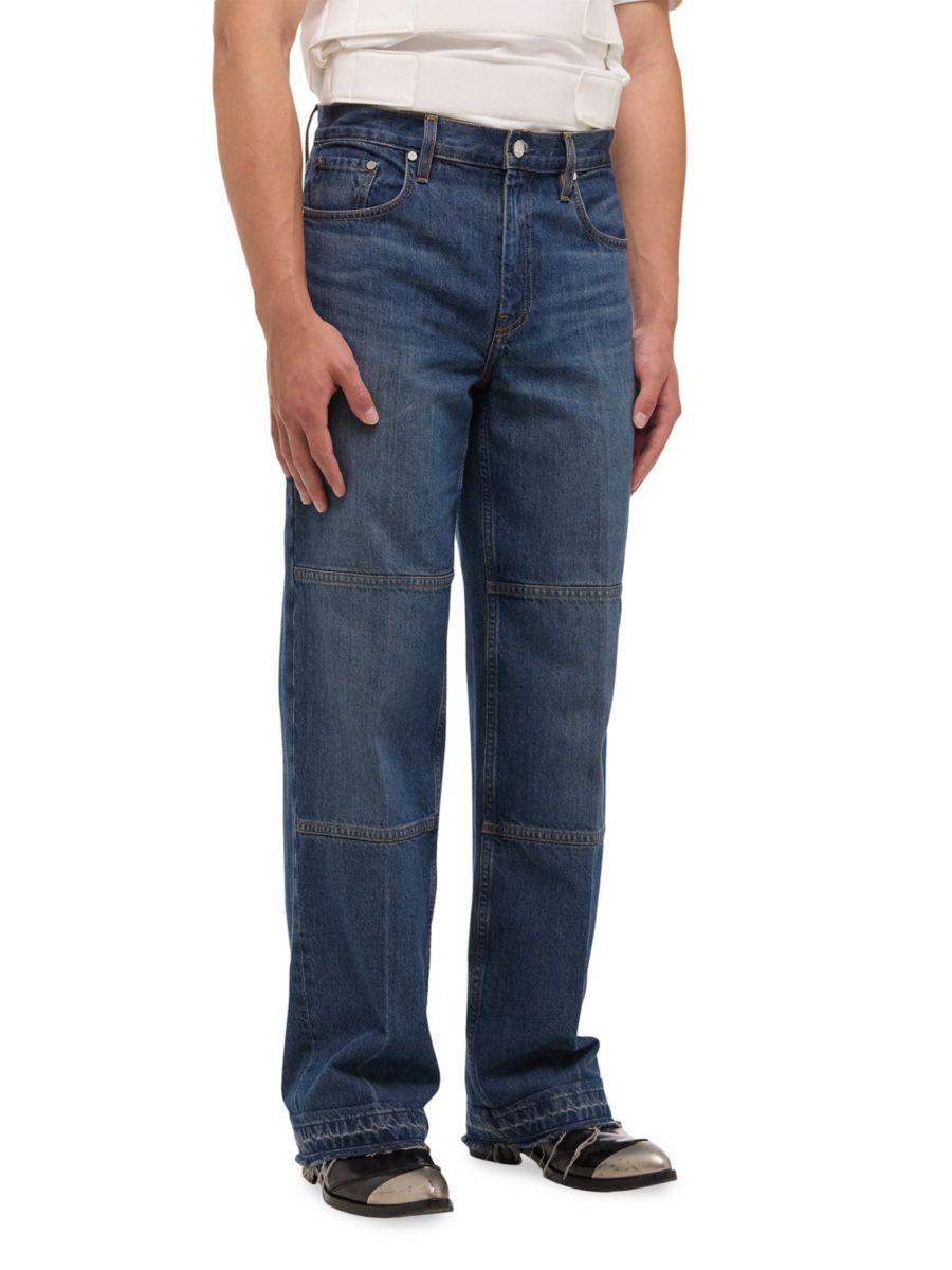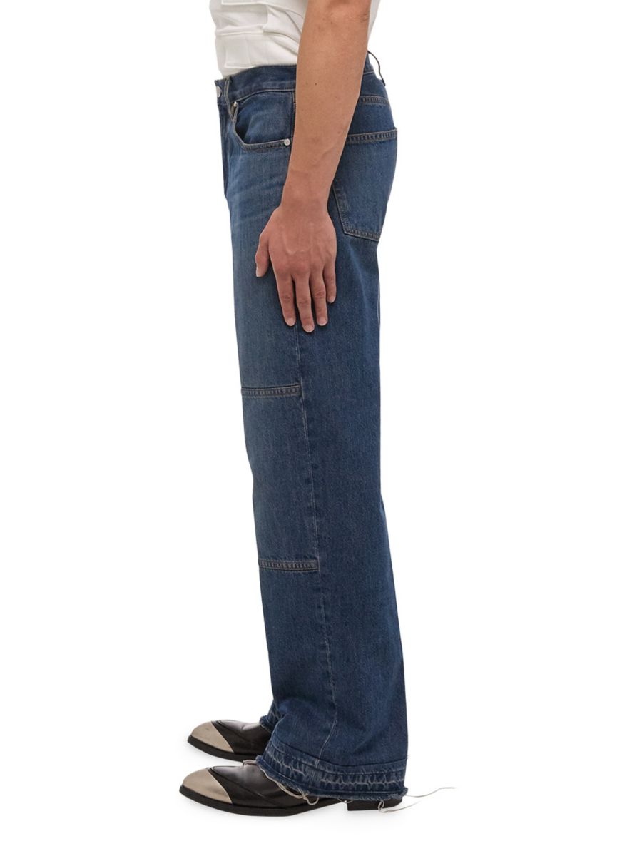 Эти джинсы Carpenter от Helmut Lang, изготовленные из стираного денима, имеют среднюю посадку, прямой силуэт и классический крой с пятью карманами.