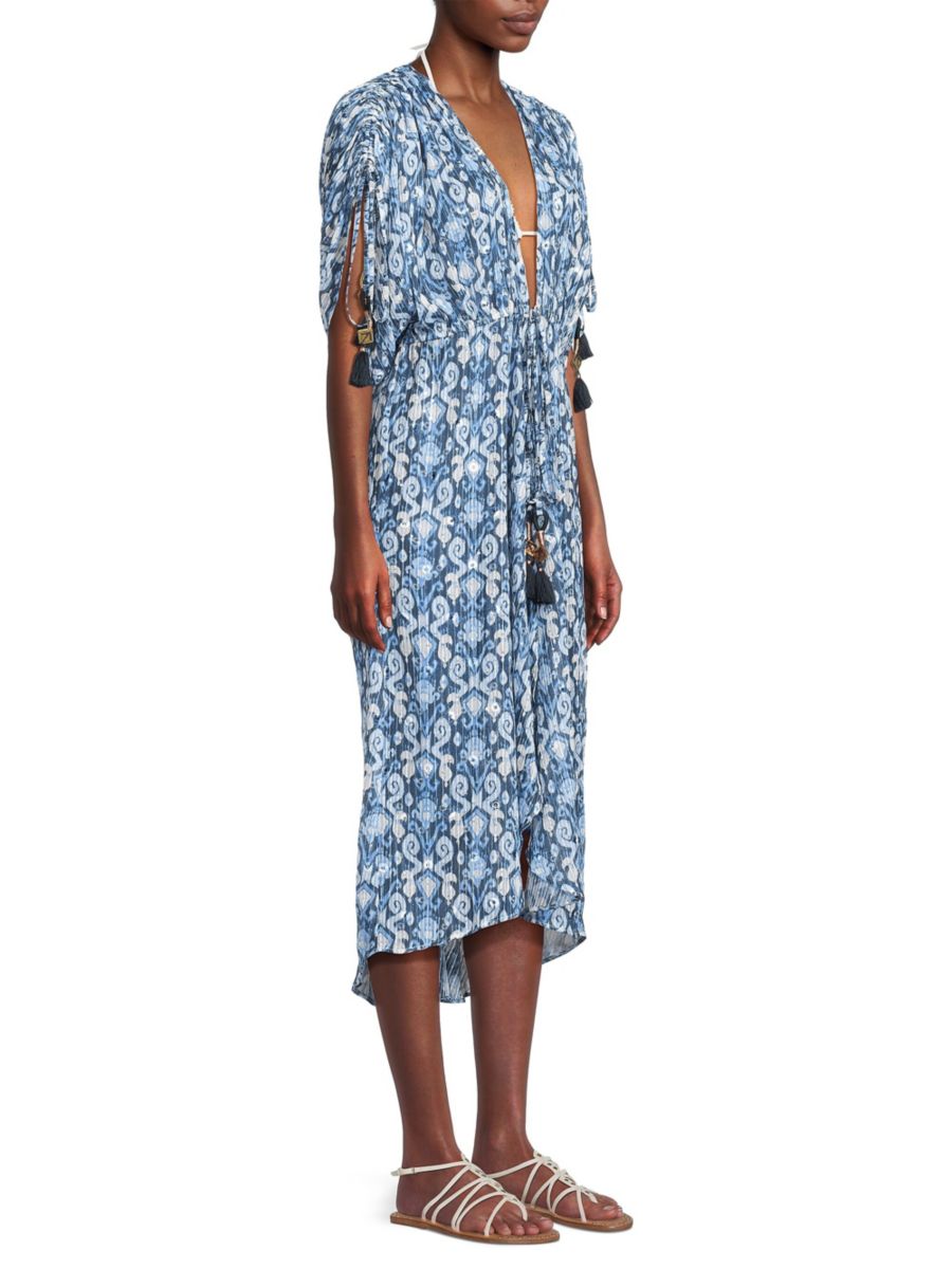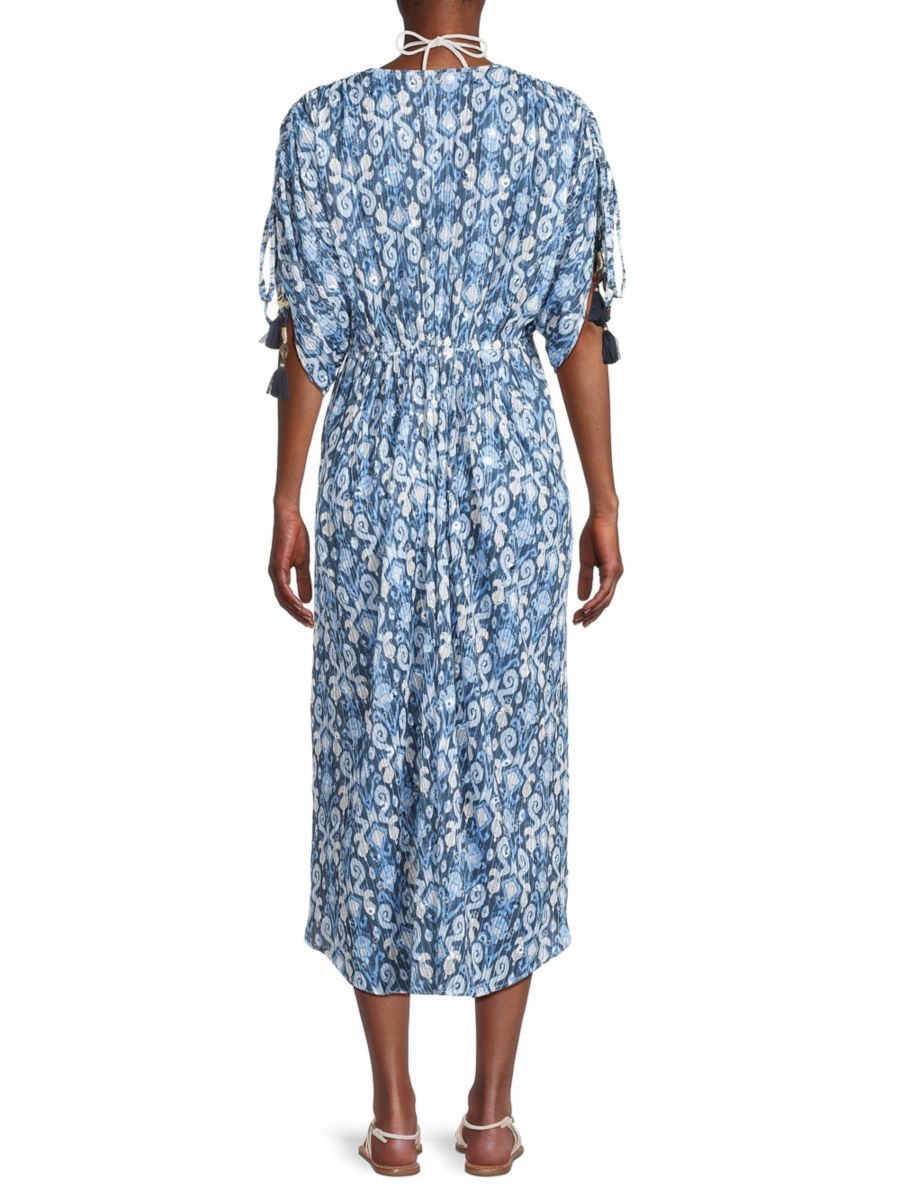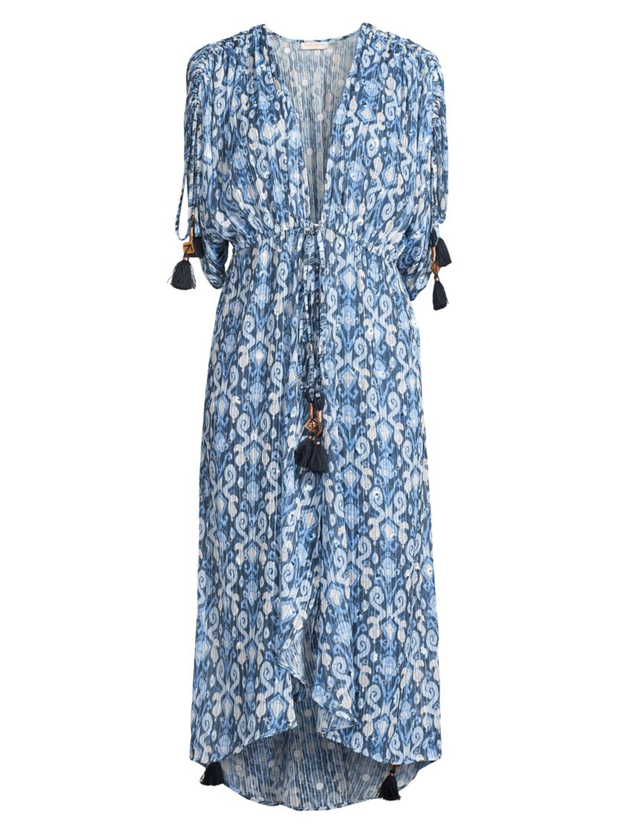Платье-макси Lessie от Ramy Brook украшено пайетками в тон и завязками с кисточками на талии и рукавах.