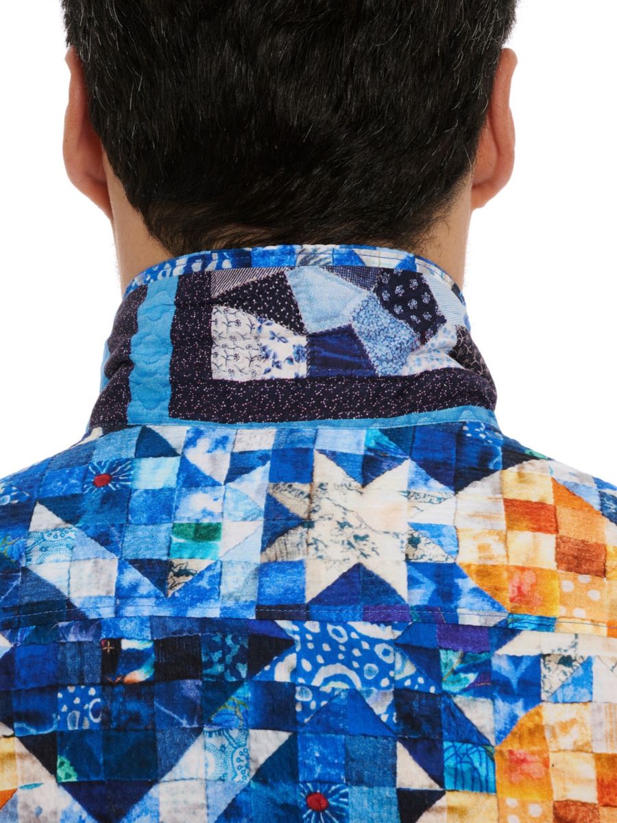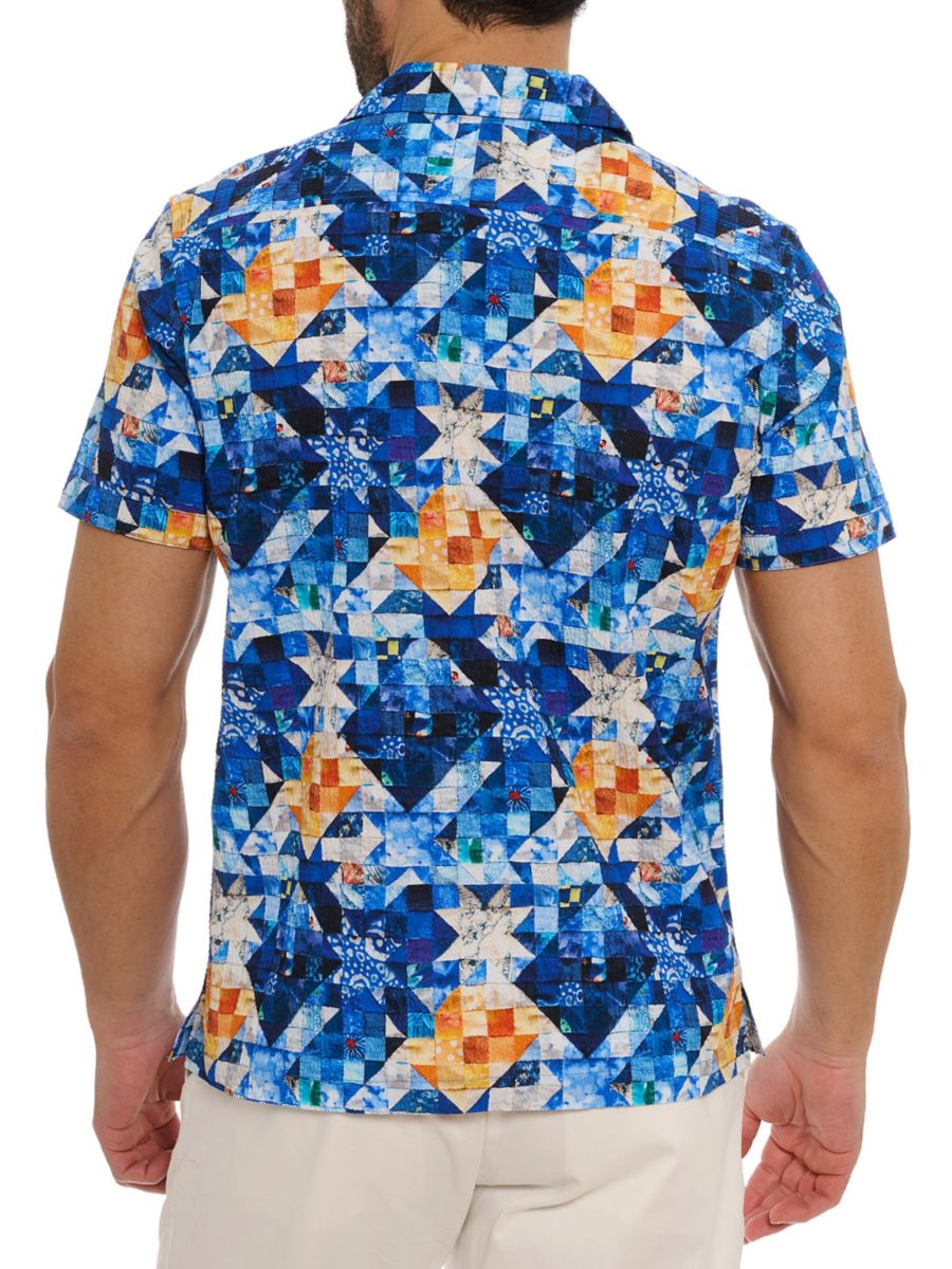 Рубашка Sashiko от Robert Graham отличается эффектным дизайном сирсакера с пуговицами спереди, дополненным графическим принтом миниатюрных плиток в ностальгическом стеганом узоре, который открывается при поднятии воротника. Изготовленная из эластичного хлопка, эта тканая модель обеспечивает классический крой.