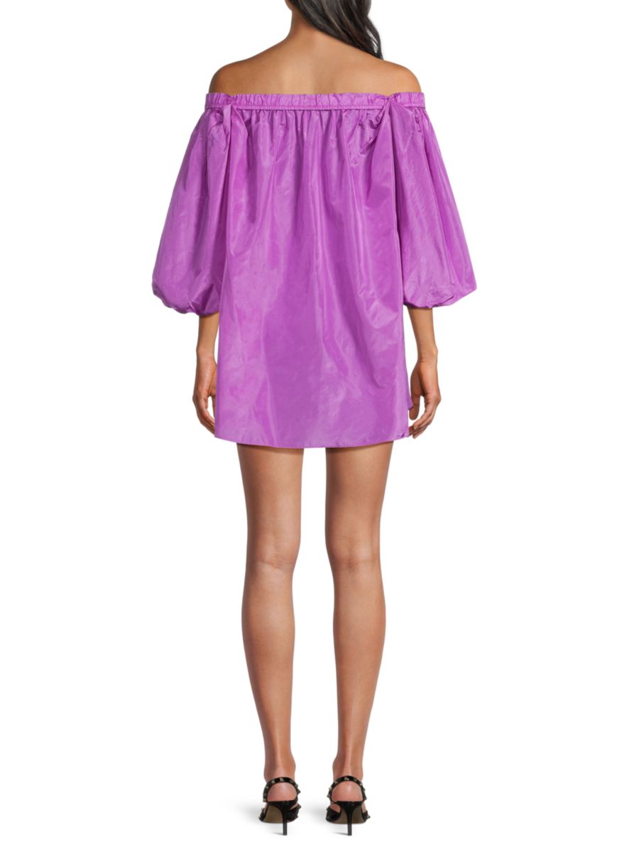 Шелковое мини-платье с открытыми плечами Valentino, цвет Amethyst