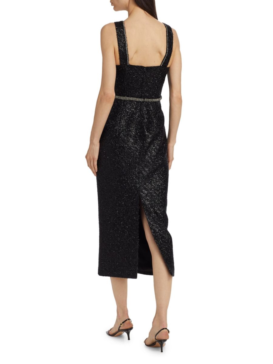 Платье миди из букле с мишурой и стразами Self-Portrait, черный