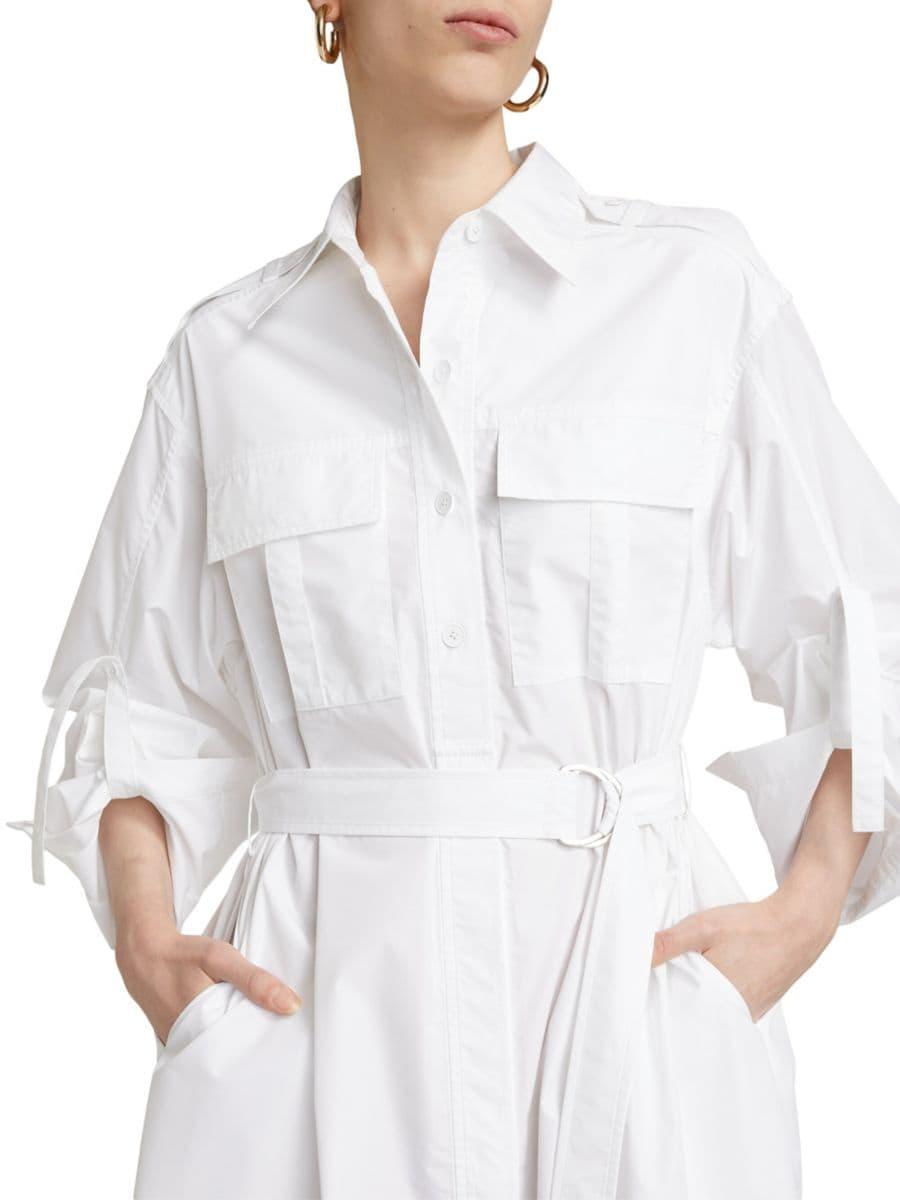 Платье-рубашка LS макси от 3.1 Phillip Lim с отложным воротником, накладными карманами с клапанами на груди и поясом на талии. Изящная застёжка на пуговицы спереди завершает этот образ.
