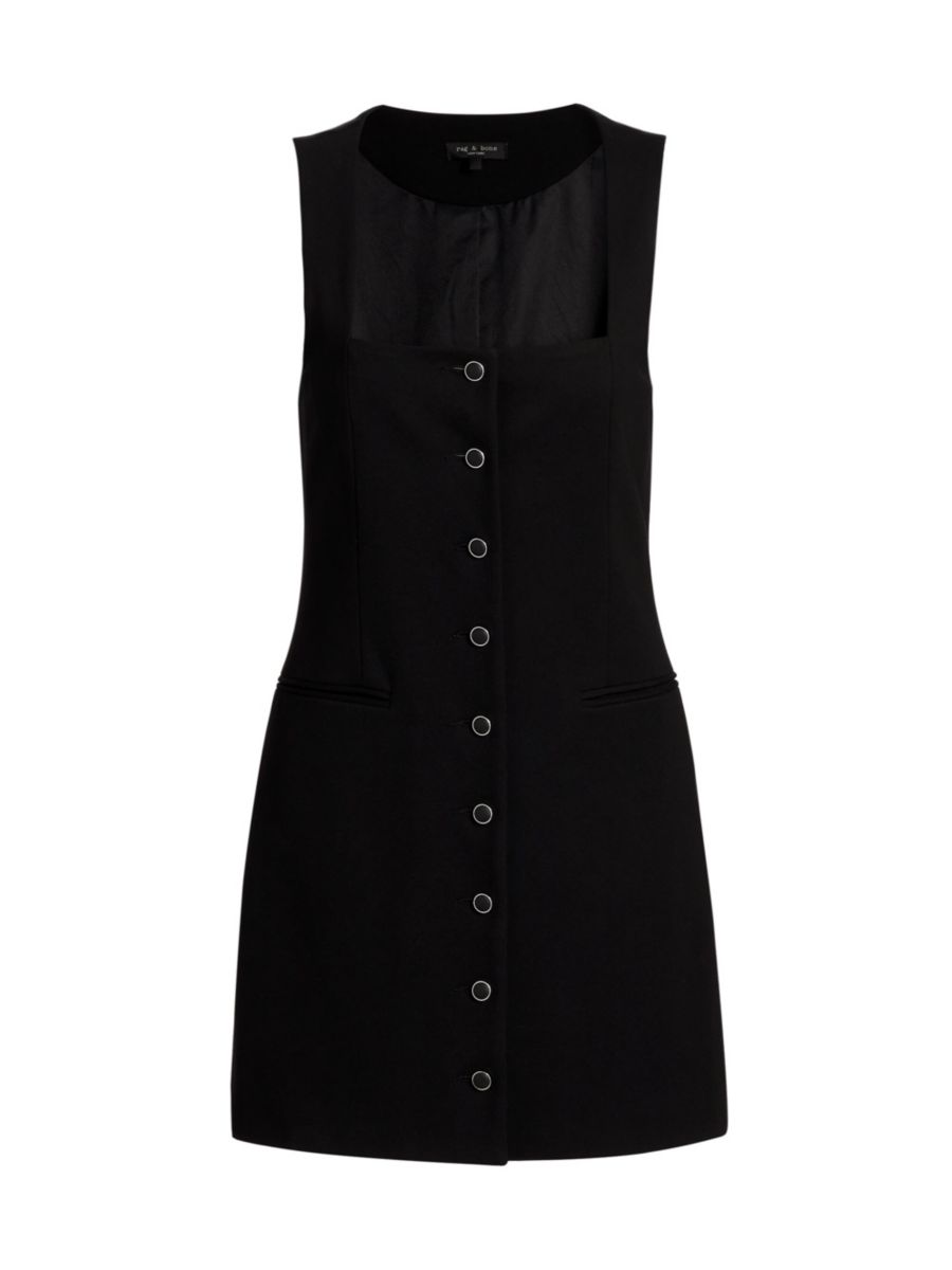 Мини-платье Marianne от rag & bone подчеркивает приталенный силуэт, дополненный квадратным вырезом, боковыми прорезными карманами и изысканной планкой на пуговицах спереди.
