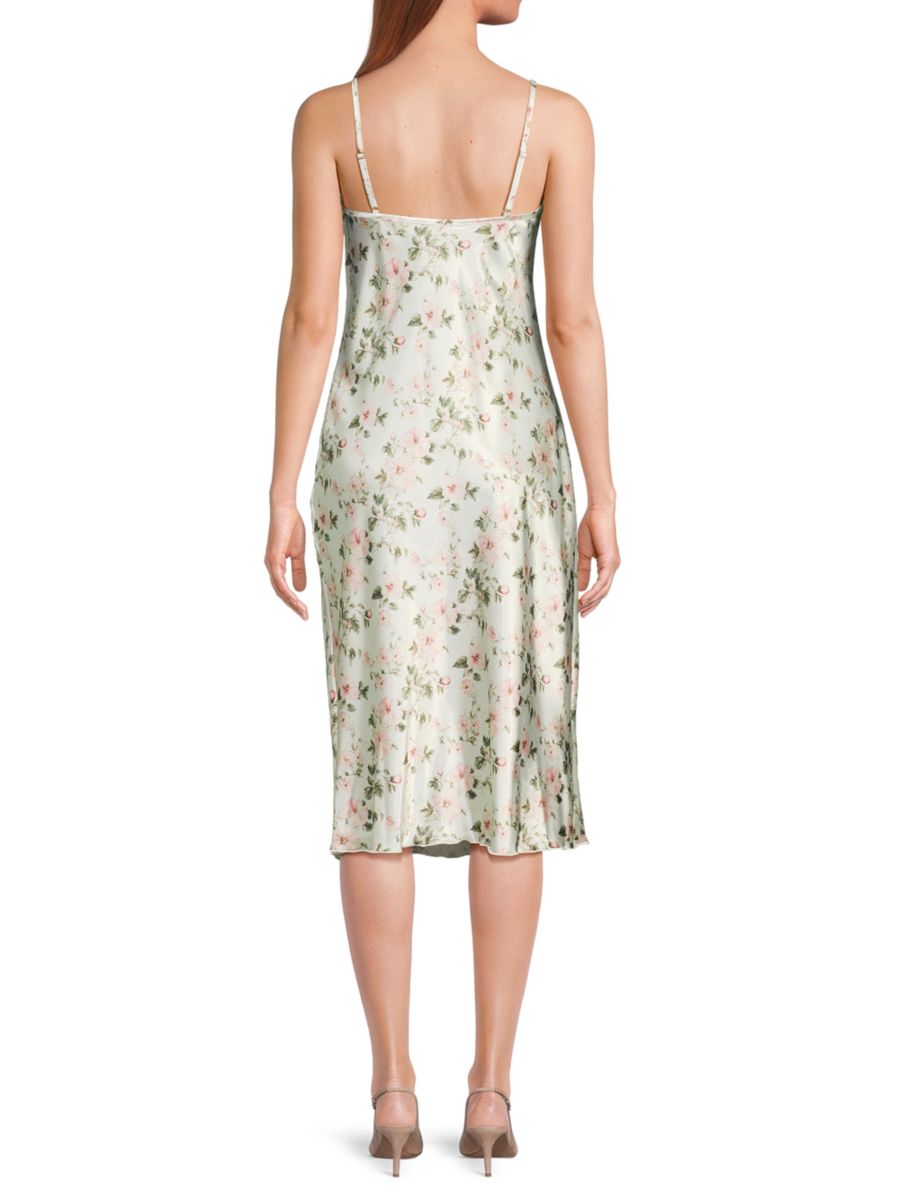 Это миди-платье от Bebe украшено цветочным принтом и скроено по косой.