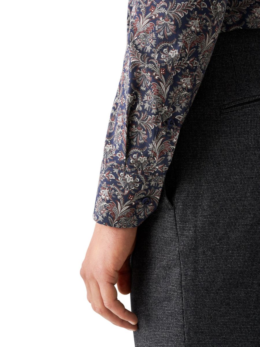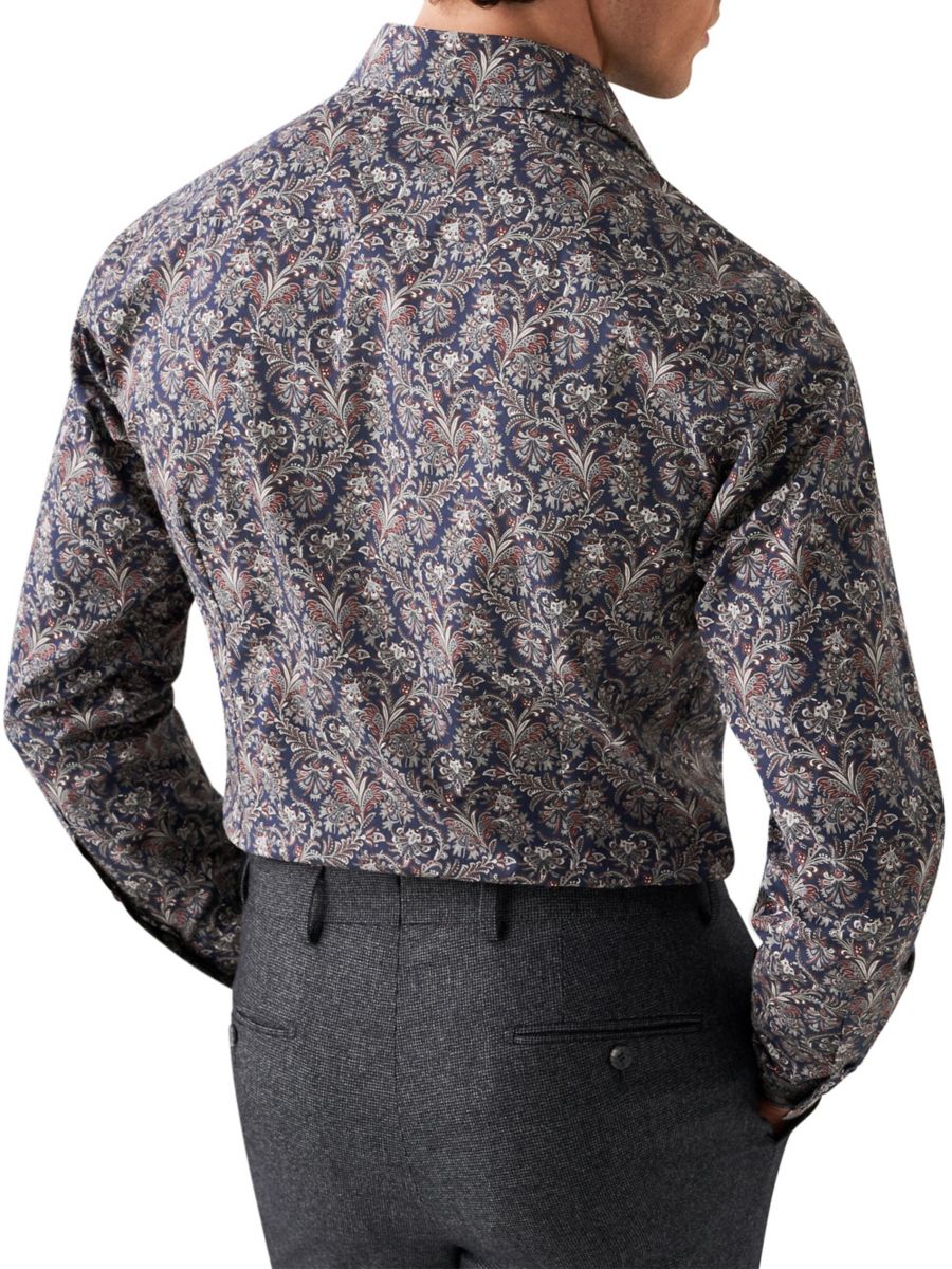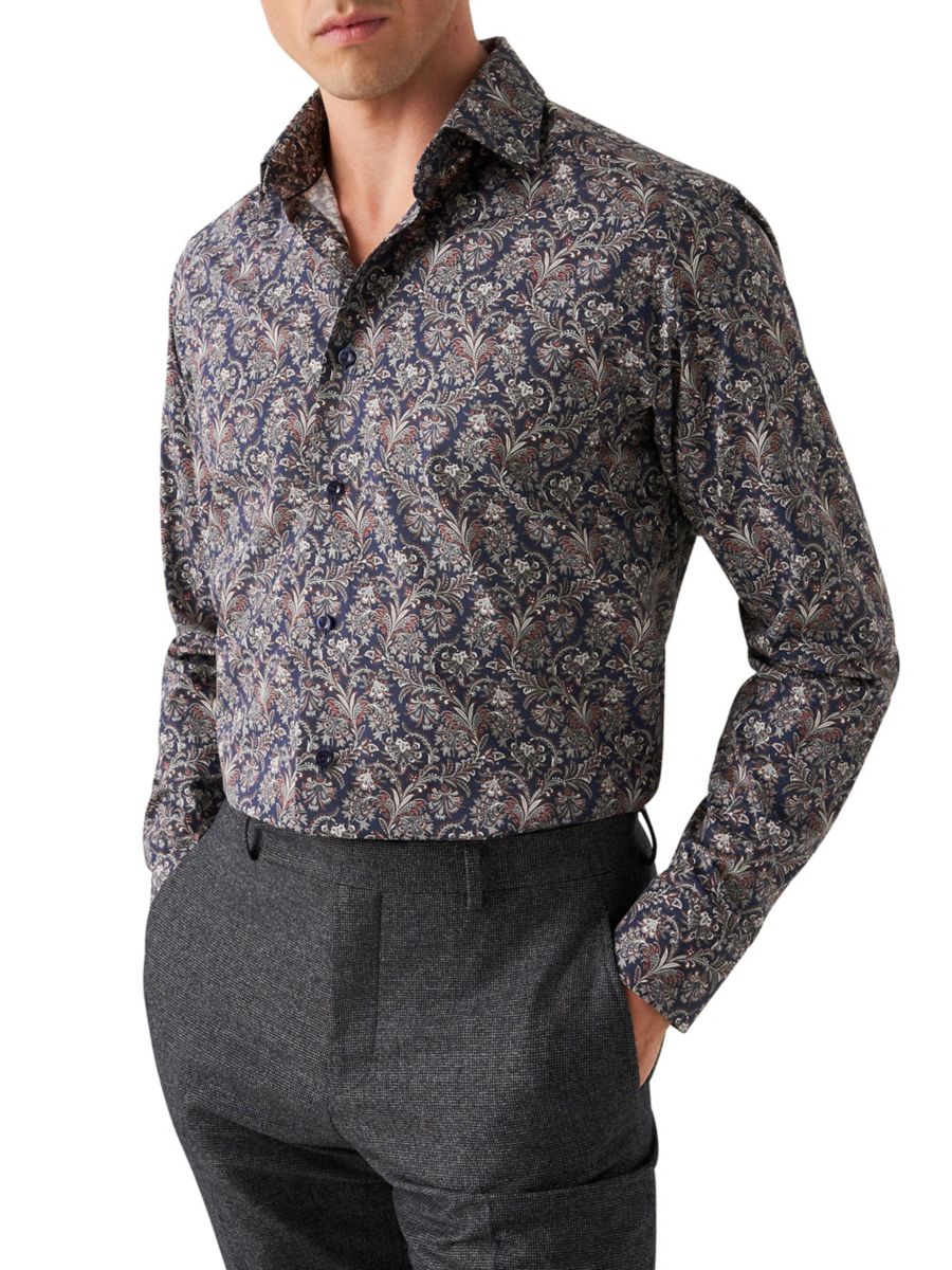 Эта рубашка от Eton изготовлена из немнущегося хлопка и украшена цветочным принтом с декоративной ажурной отделкой по всей поверхности. Она имеет вырезной воротник и длинные рукава.