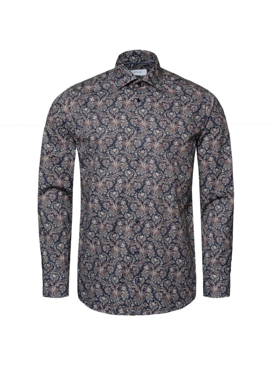 Рубашка-рубашка из хлопка с цветочным принтом Eton, темно-синий