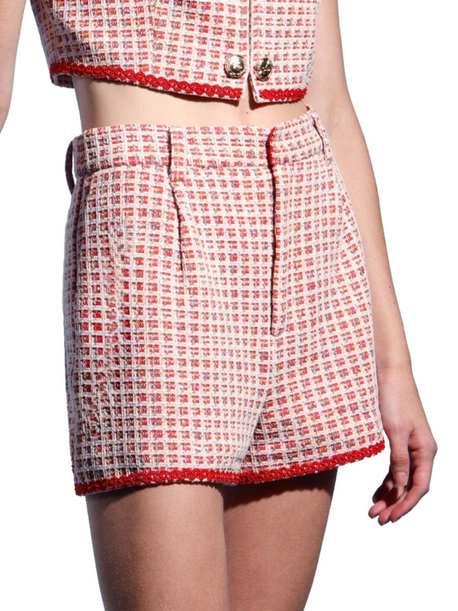 Шорты Audrey от Walter Baker отличаются ярким клетчатым плетением, контрастной отделкой и четкими складками спереди для создания строгого эффекта.