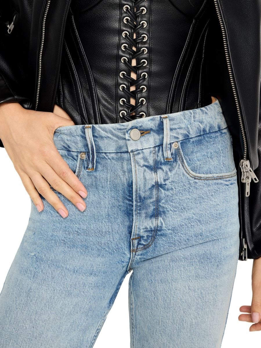Джинсы Good Icon прямого кроя от Good American отличаются потертым денимом и классической средней посадкой.