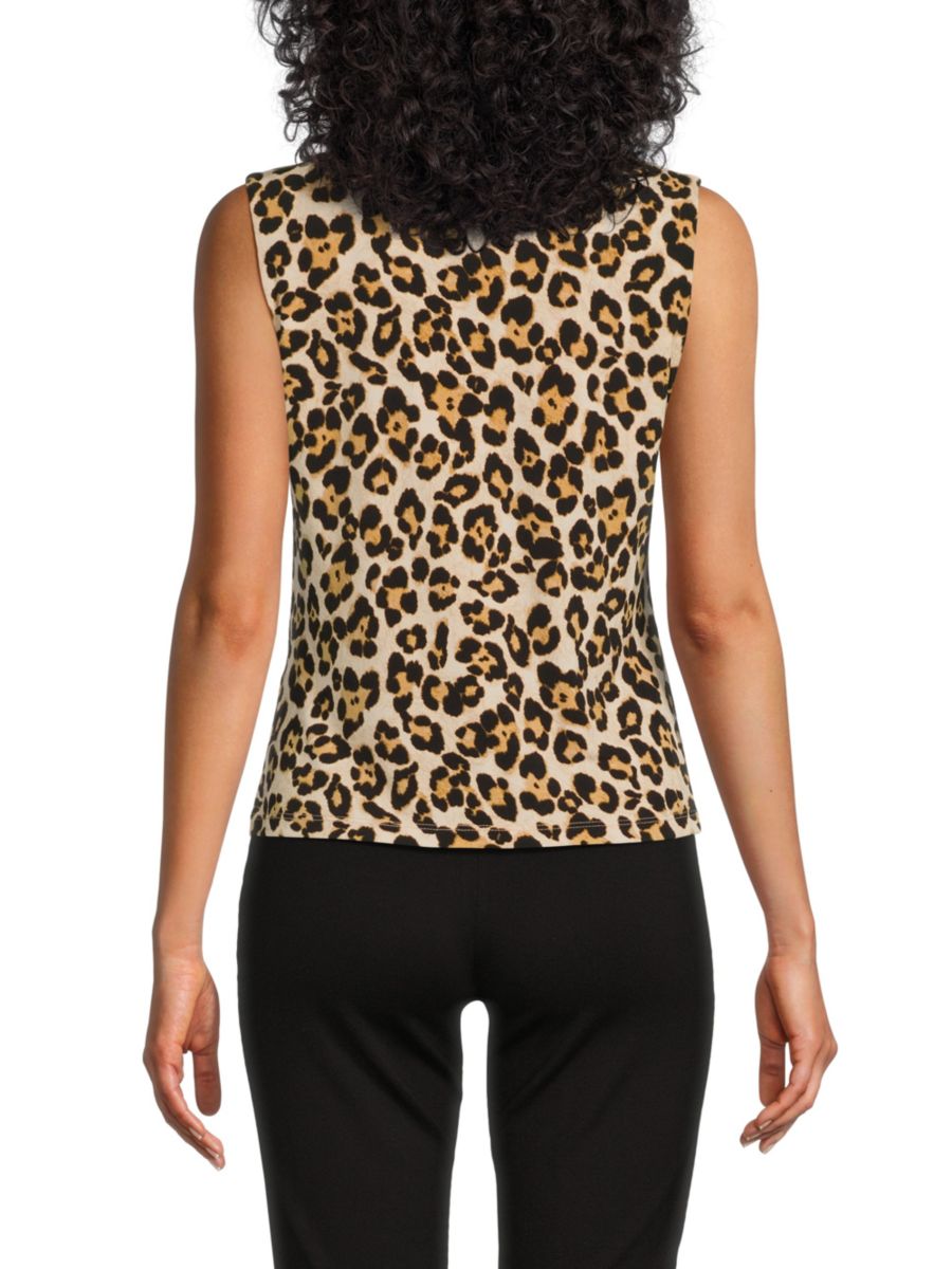Этот топ без рукавов от DKNY отличается асимметричным вырезом и мягкой драпировкой спереди. Леопардовый принт по всей поверхности придаёт приталенному силуэту эффектную привлекательность.