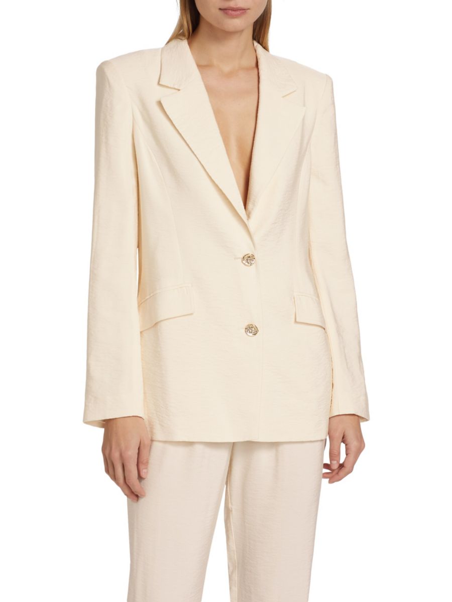 Пиджак Mildred от Ramy Brook отличается отточенными лацканами, боковыми карманами с клапанами и застёжкой на две пуговицы. Вязаный пояс придаёт этому структурированному изделию богемный вид.
