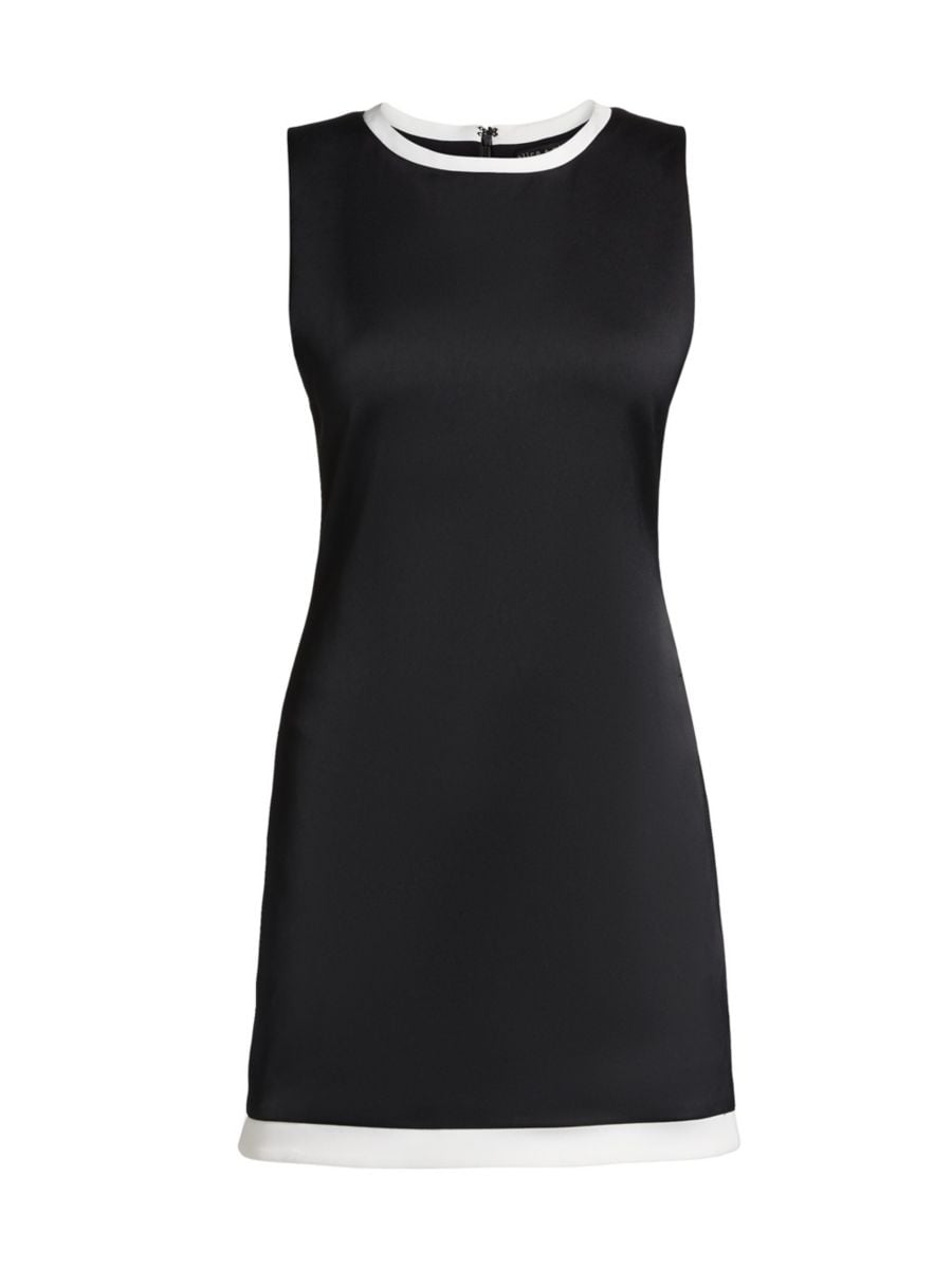 Это мини-платье без рукавов Wynell от Alice + Olivia, выполненное в облегающем силуэте, имеет круглую горловину, облегающий силуэт и контрастную отделку.