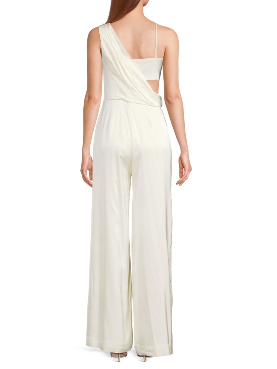 Этот комбинезон Амур из эластичной смесовой ткани с асимметричным вырезом и эффектной драпировкой на плечах. Элегантный дизайн и современные детали создают изысканный, но в то же время смелый образ.