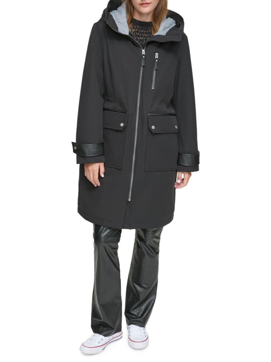 Парка Andrew Marc Gemas с прикреплённым капюшоном и длинными рукавами. Застёжка-молния спереди, карман на молнии и карманы на кнопках спереди, удобная подкладка.