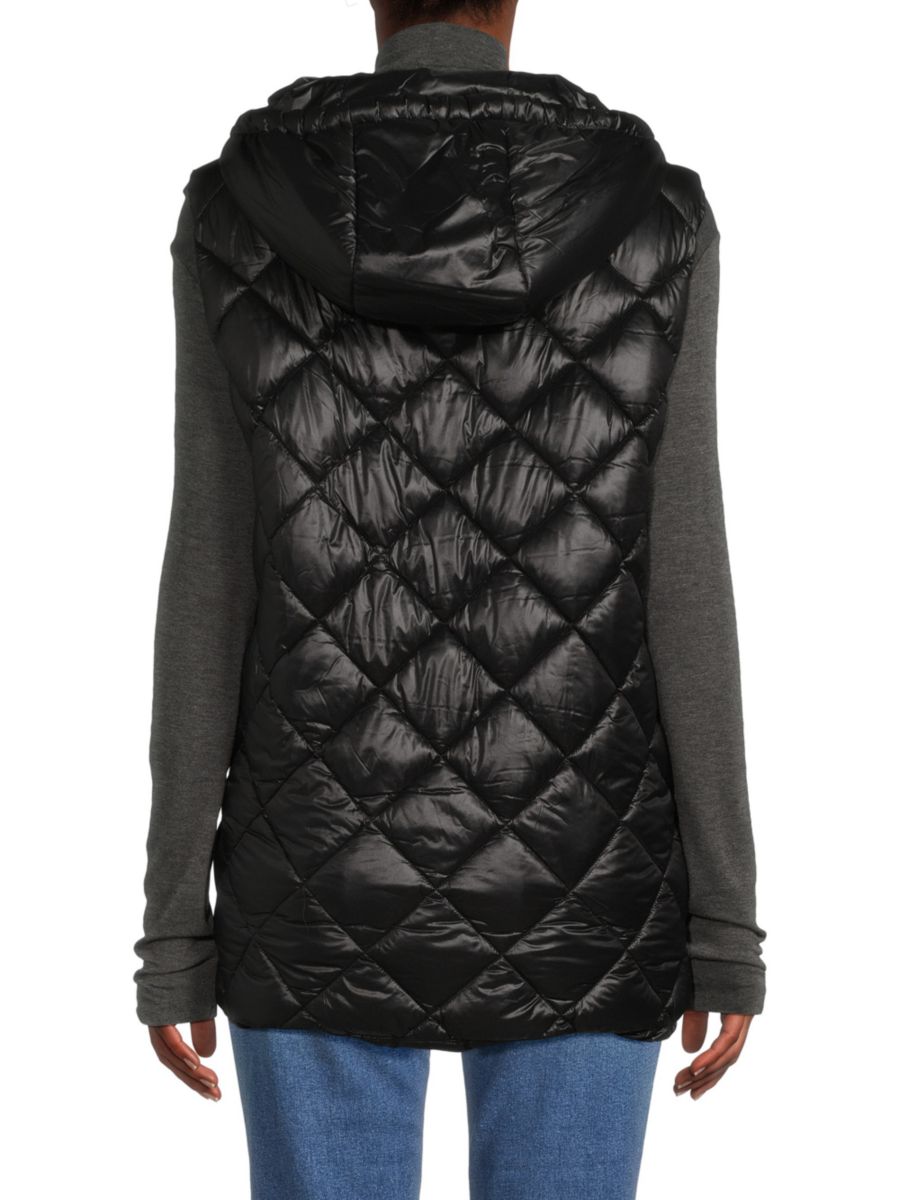 Спортивный стеганый жилет Andrew Marc с капюшоном на шнурке и без рукавов.