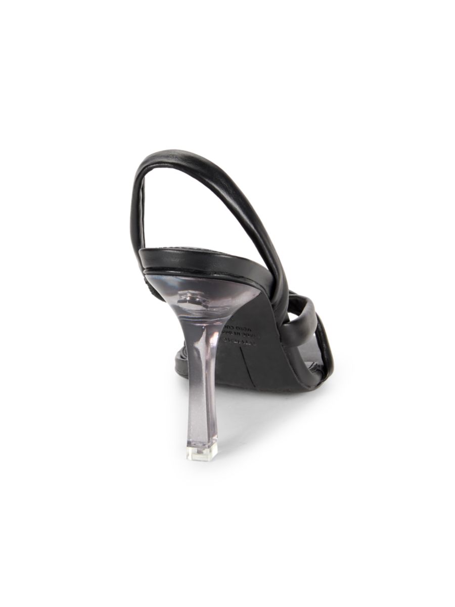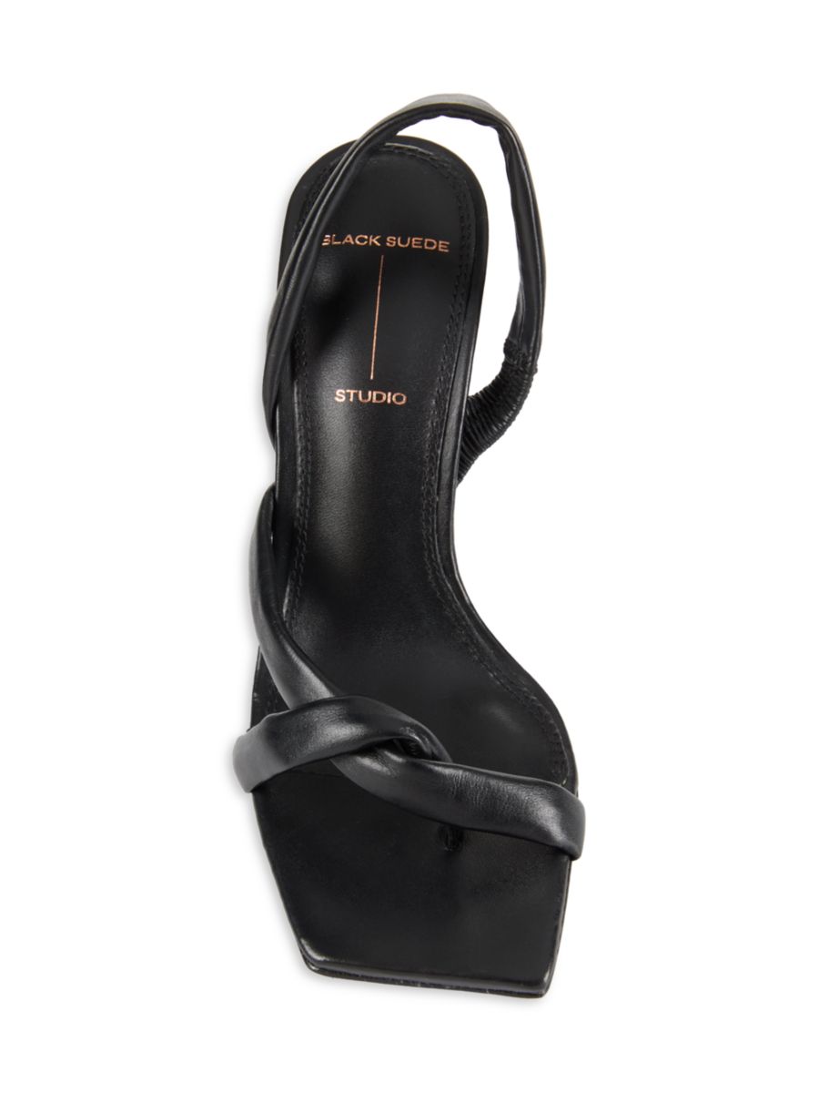 Эти босоножки Black Suede Studio с открытым носком и застежкой-липучкой выполнены из кожи и дополнены обтянутым каблуком-шпилькой.
