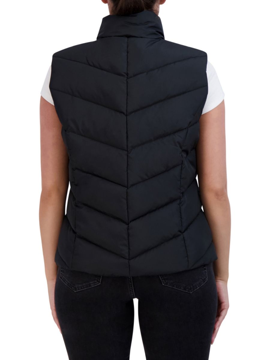 Этот модный стеганый жилет со стеганой отделкой и удобными карманами на талии обеспечивает уютную и теплую посадку.