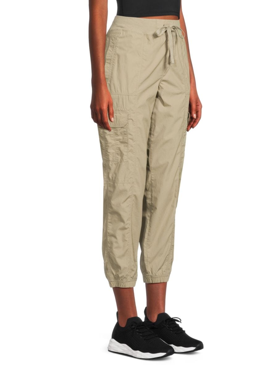 Эти брюки-карго от DKNY, изготовленные из хлопка, имеют укороченный силуэт, пояс на шнурке и практичные карманы.