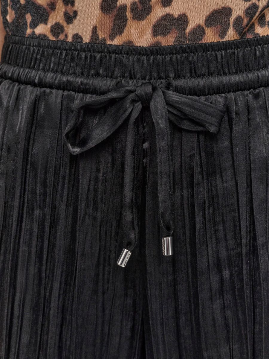 Эти брюки от DKNY имеют жатую отделку, среднюю посадку, широкий силуэт и пояс на шнурке для регулировки.
