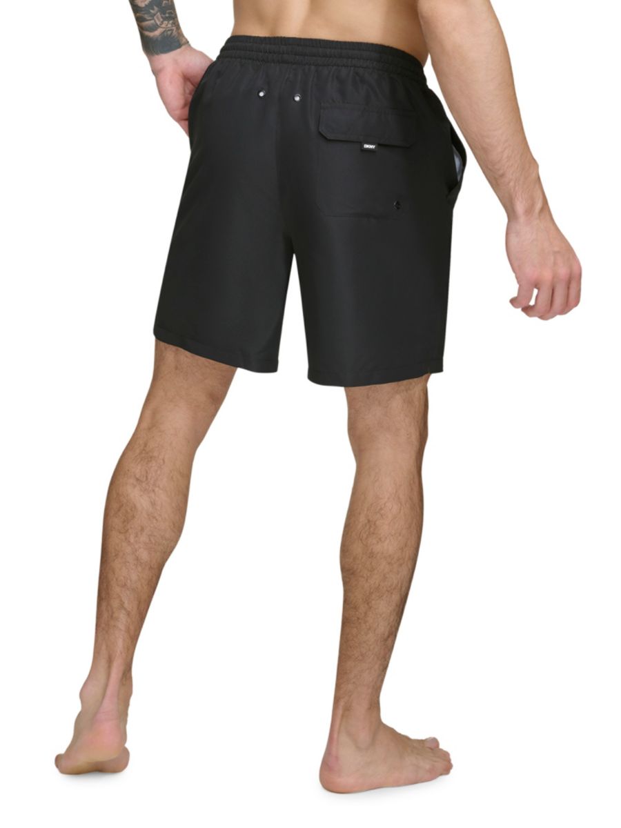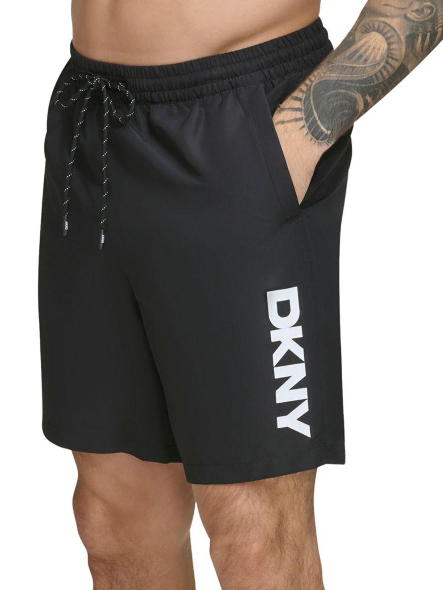 DKNY предлагает плавки-шорты с кулиской на талии и застежкой. Они оснащены боковыми карманами и накладным карманом сзади. Они обладают защитой от ультрафиолета UPF 40+ и быстросохнущими свойствами.