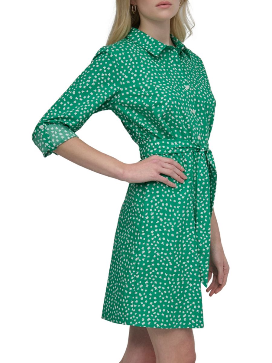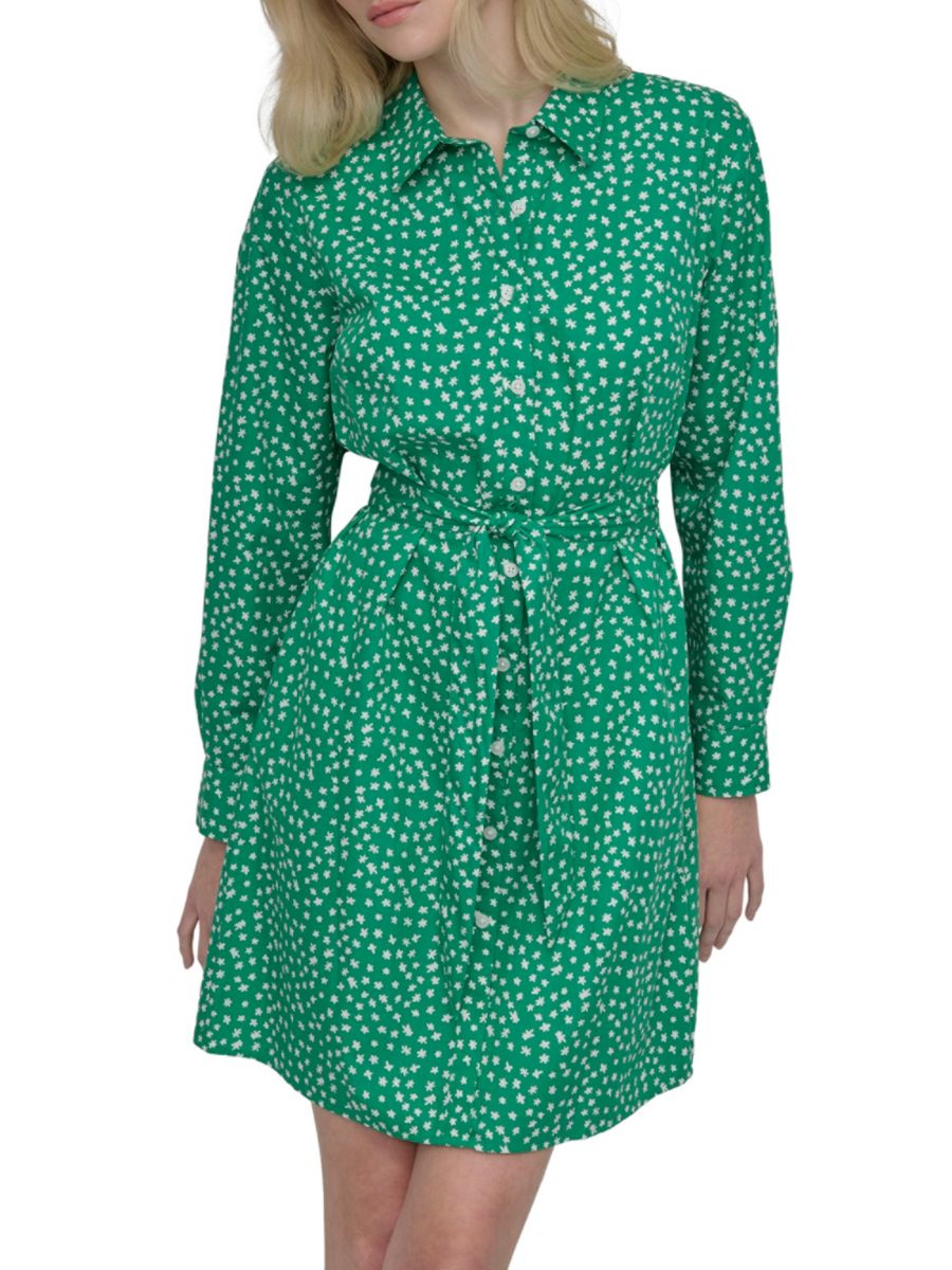 Платье-рубашка мини с длинными рукавами DKNY, цвет Apple Green Ivory