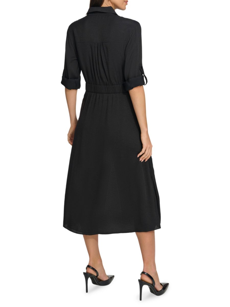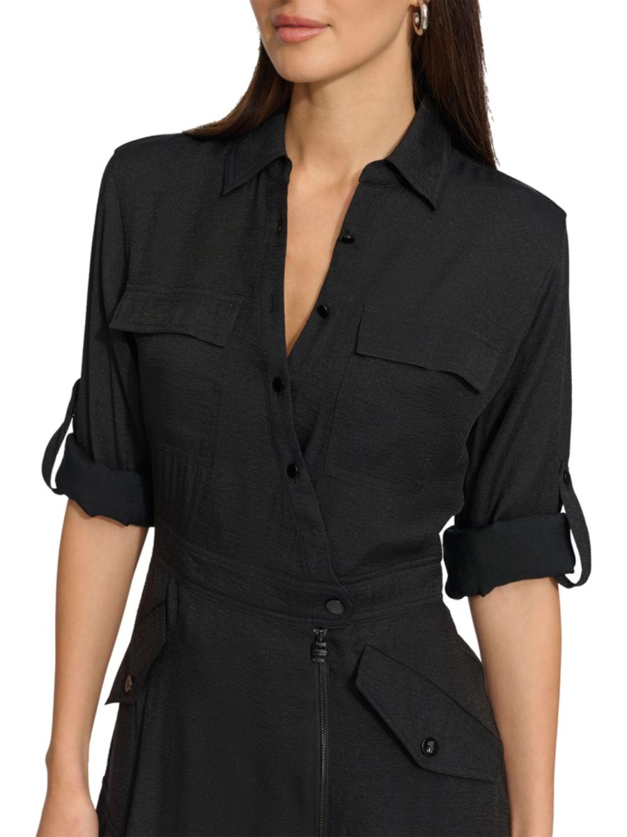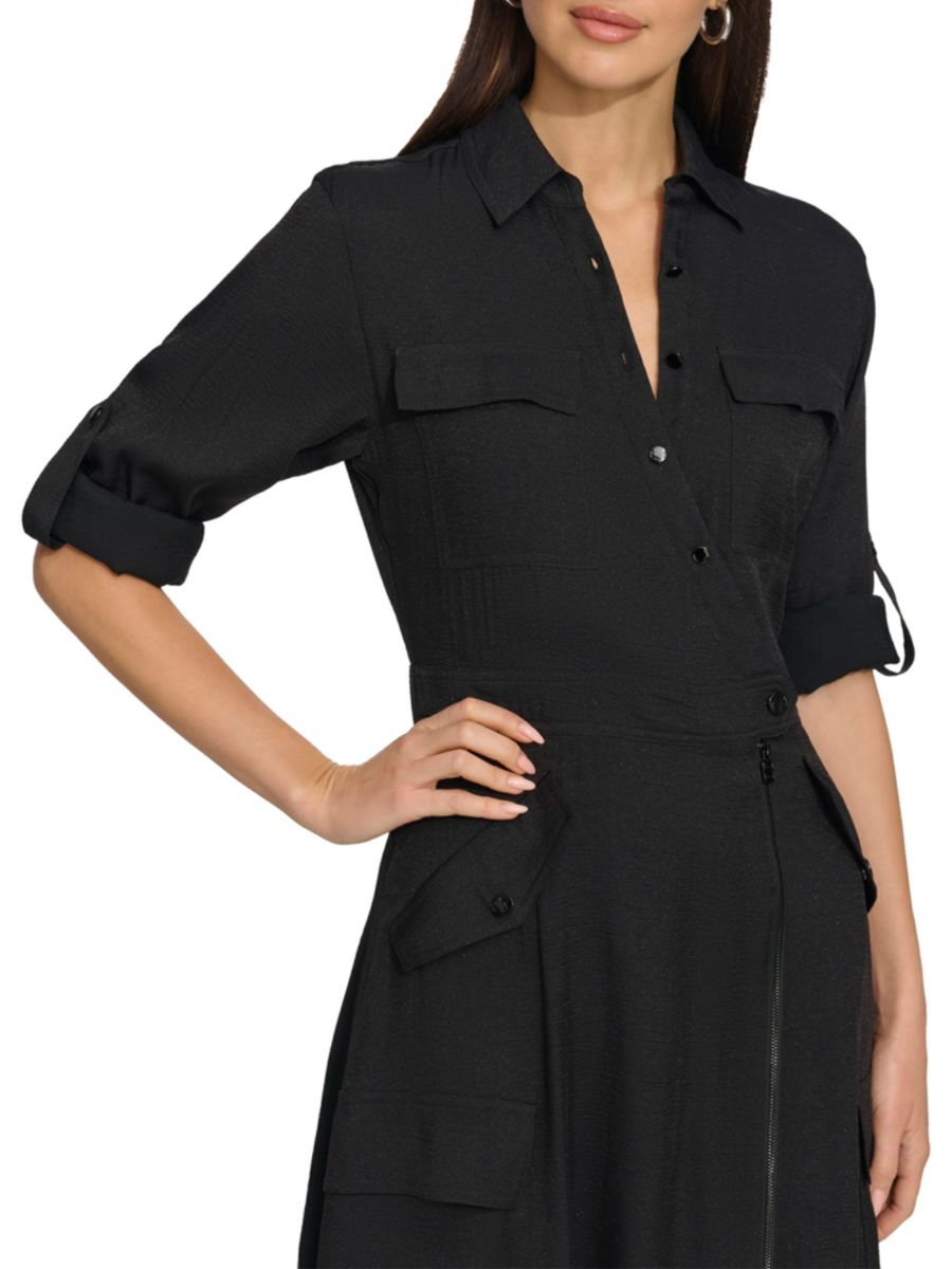 Шелковистое платье-карго миди с длинными рукавами DKNY, черный
