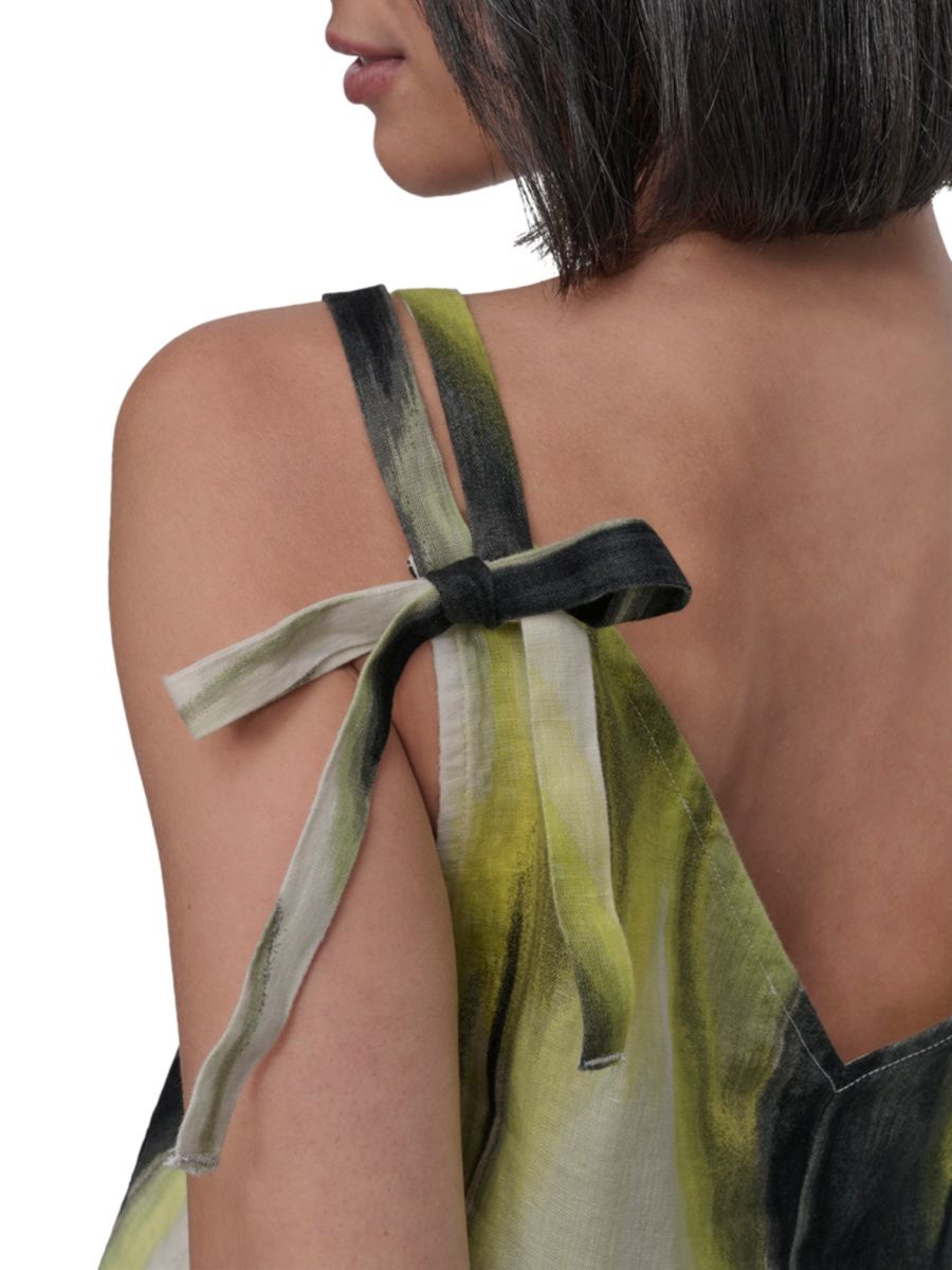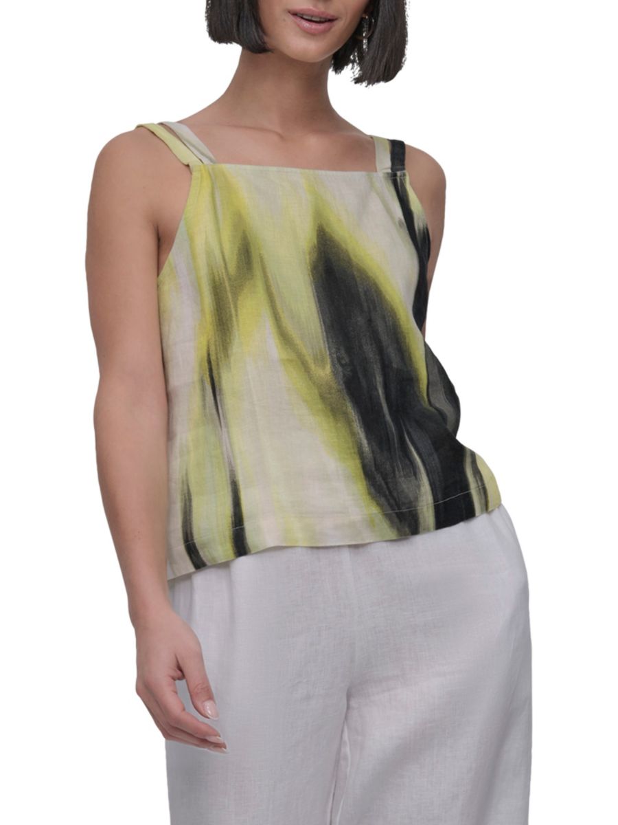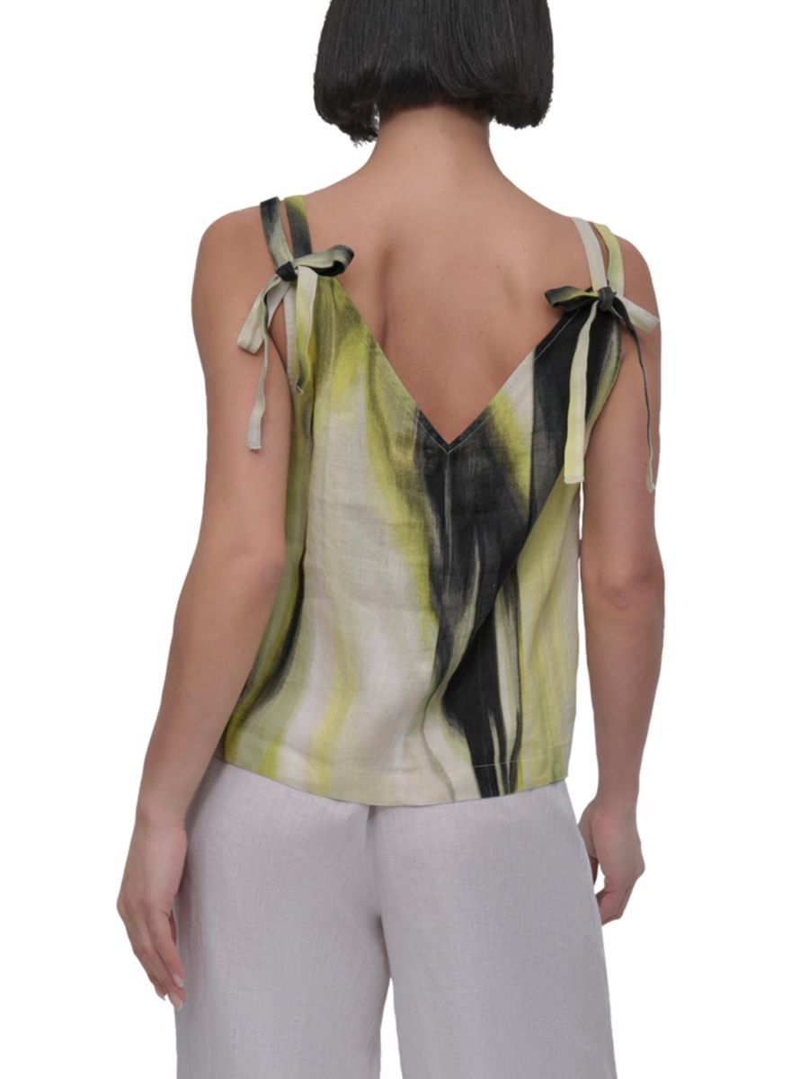 Этот топ с принтом от DKNY изготовлен из льна и дополнен двумя бретельками с завязками на плечах.