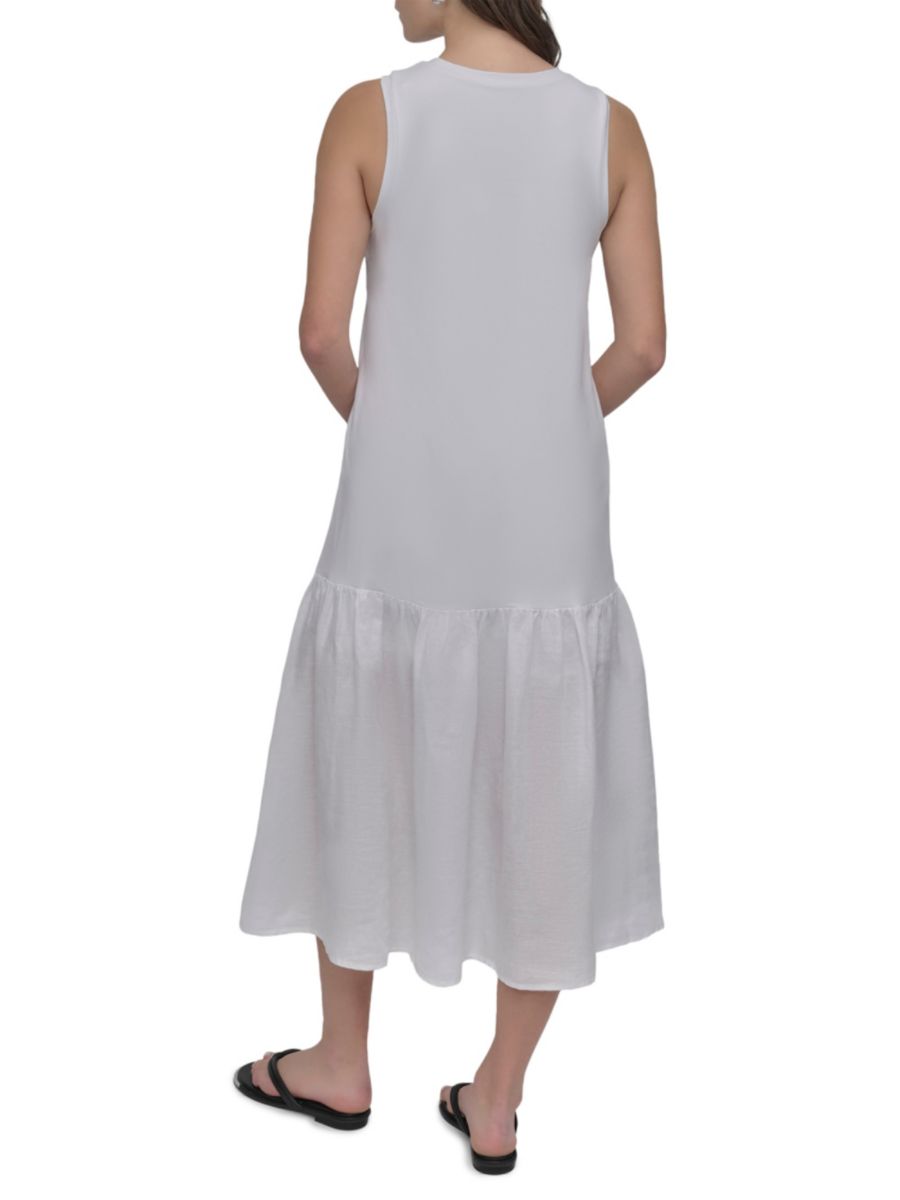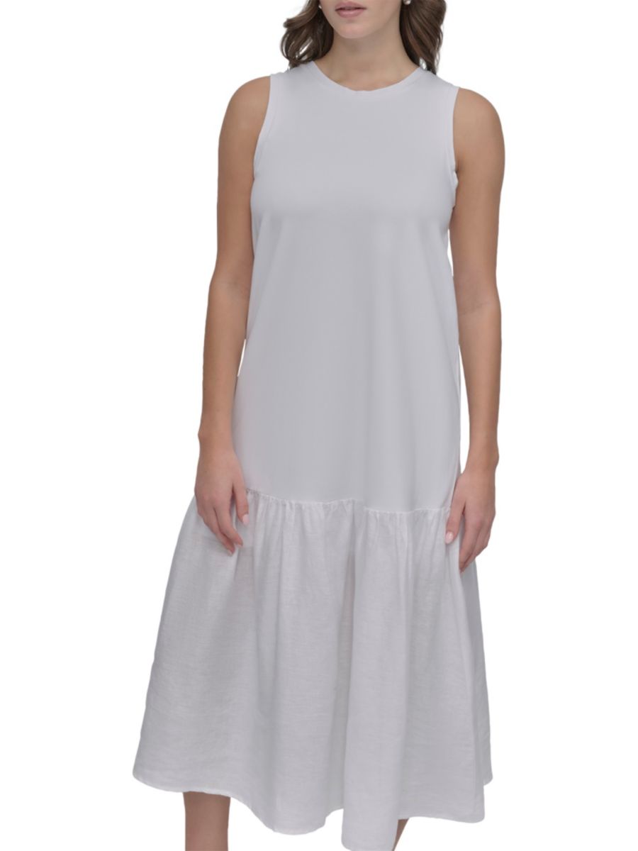 Платье миди без рукавов из смешанной техники DKNY, белый