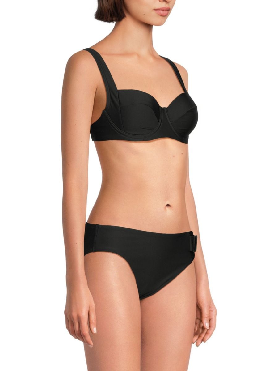 Верх бикини от DKNY имеет вырез сердечком с регулируемыми бретелями и надежной застежкой на крючки сзади.