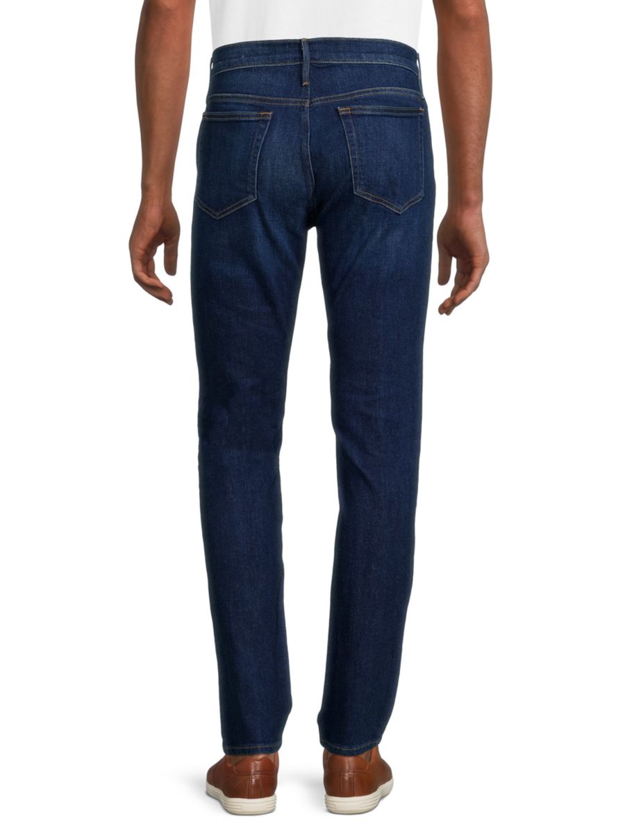 Фирменный облегающий крой от Frame выполнен из эластичного денима с потертостями и потертостями. Они предназначены для повседневной носки и облегают брючины.