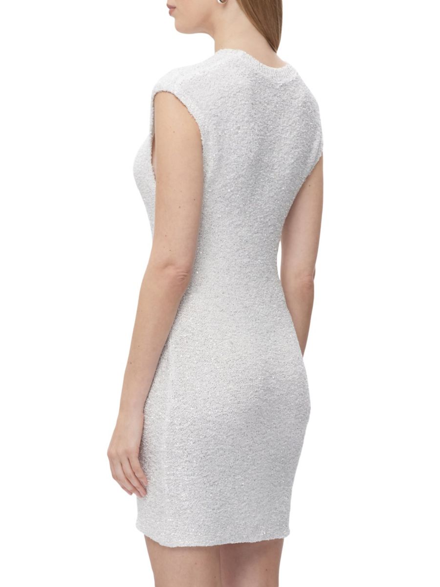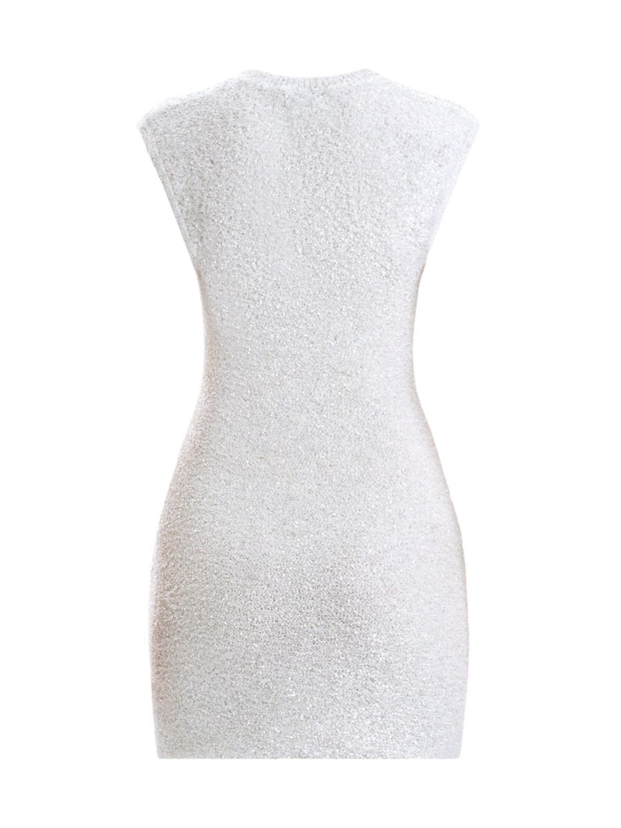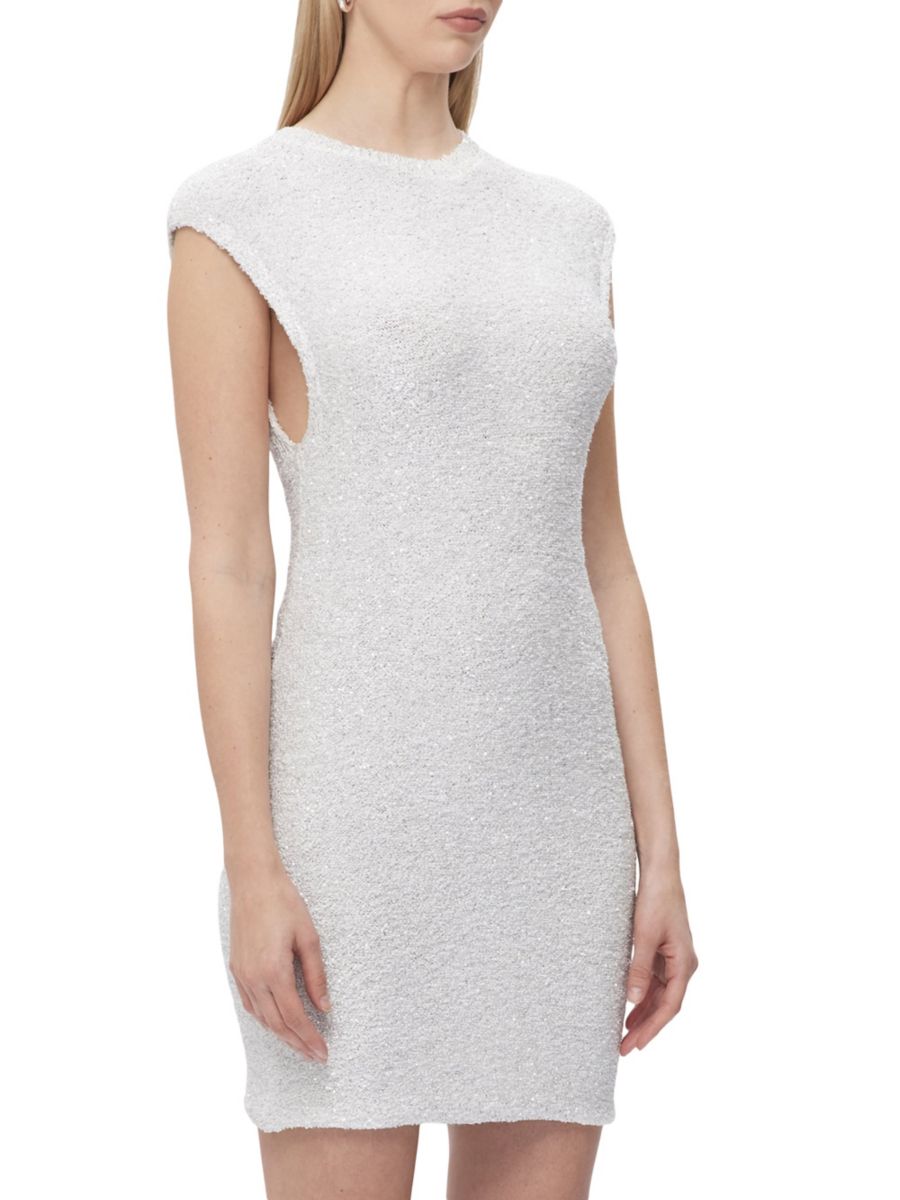 Мини-платье Delilah от Herve Leger облегающего силуэта, сшитое из мягкой пряжи с пайетками, создаёт гламурный образ. Спущенная линия плеча и удлинённая пройма создают эффектный и современный образ.