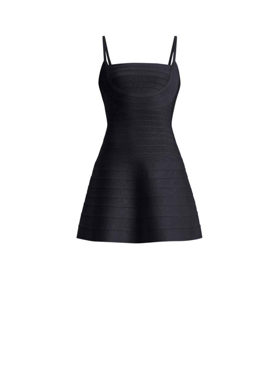 Мини-платье Milly от Hervé Léger с квадратным вырезом и А-образным силуэтом облегающего эластичного кроя.