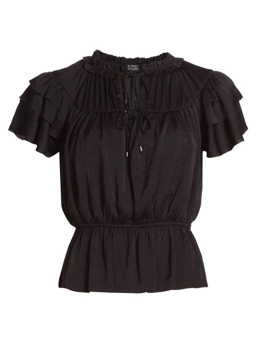 Верх Parachute от If Only Studio с оборками дополнен плиссированной кокеткой и подолом в стиле пеплум.
