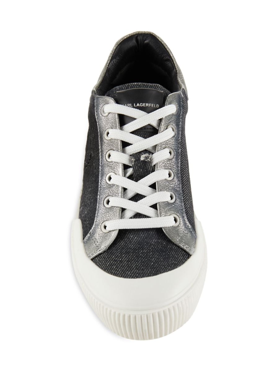 Эти кроссовки Karl Lagerfeld Paris изготовлены из гладкой кожи с вышитым логотипом. Шнуровка спереди и резиновая подошва.