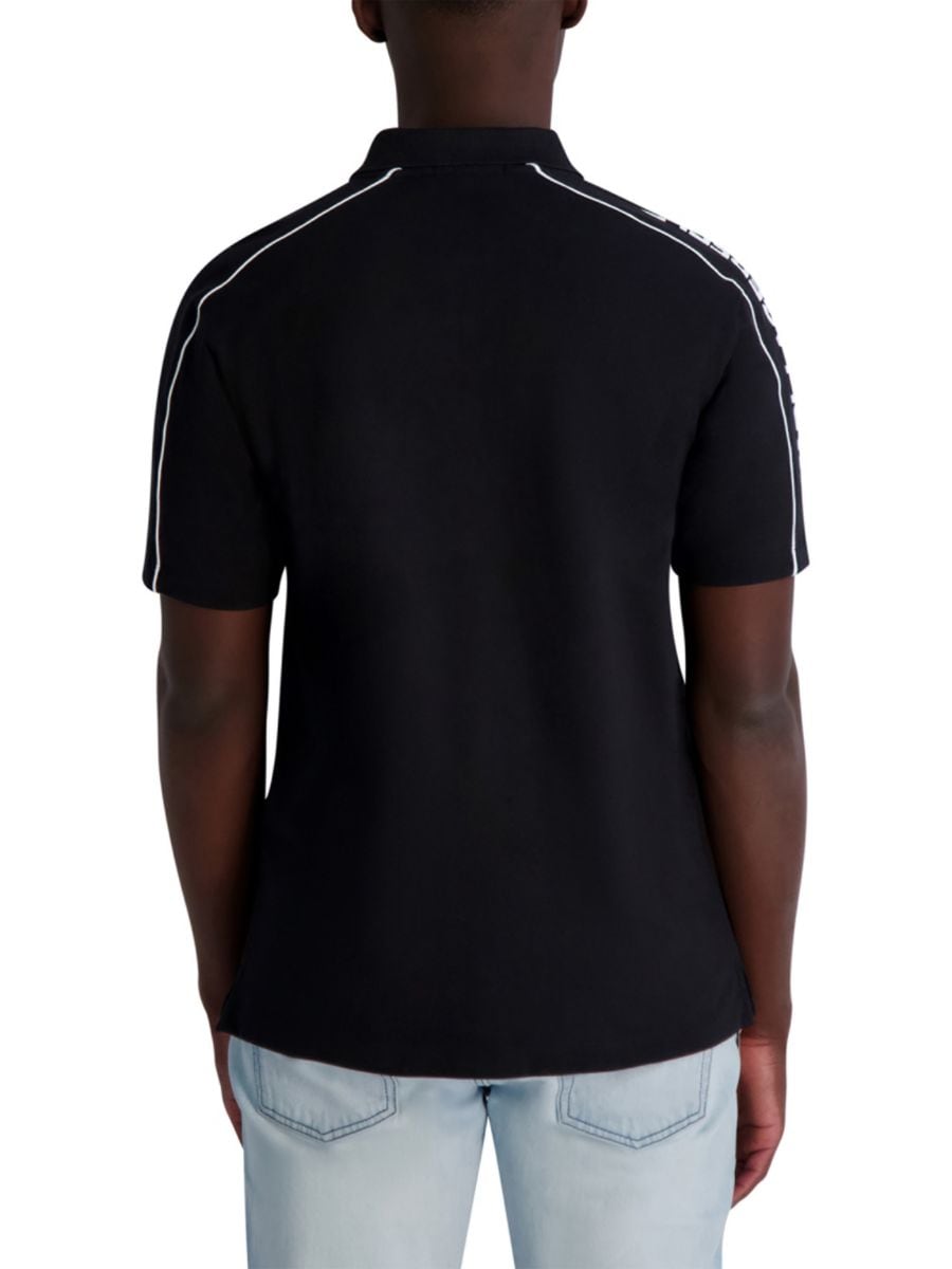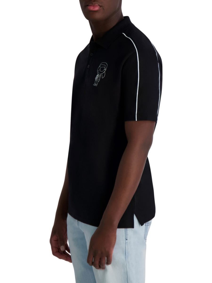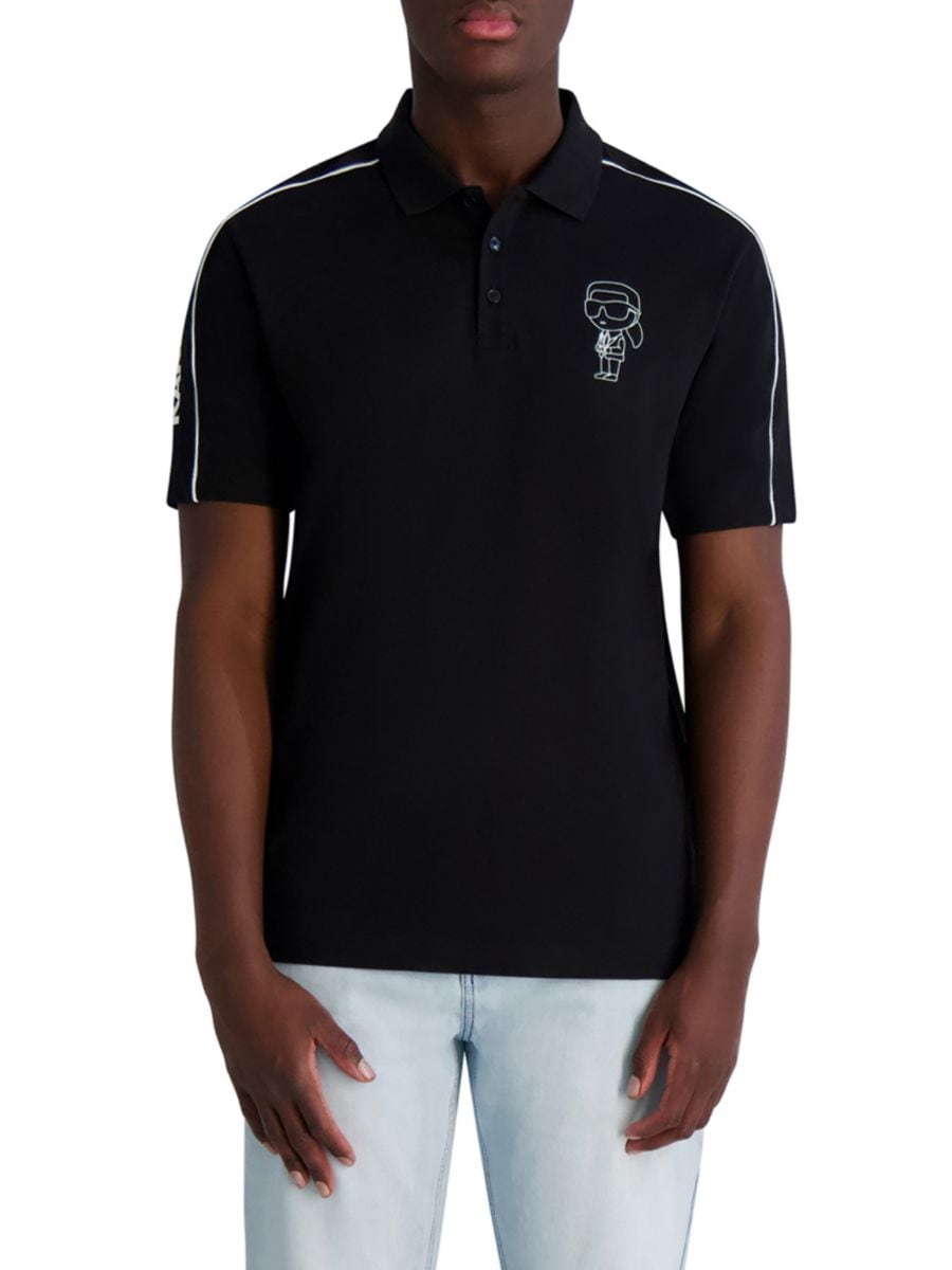 Эта рубашка-поло Karl Lagerfeld Paris выполнена из эластичного хлопка классического силуэта. Она имеет ребристый воротник, планку на пуговицах и короткие рукава с ребристыми манжетами.