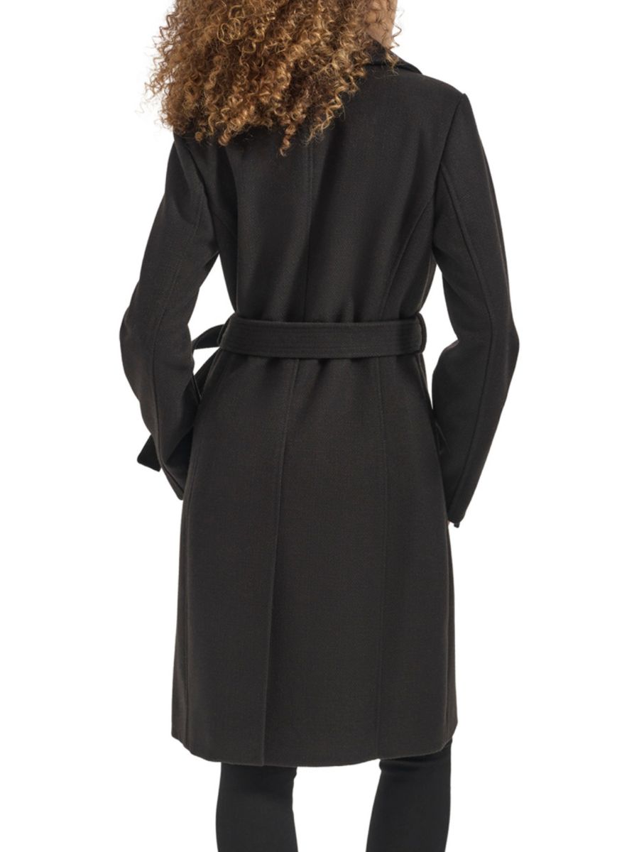 Это двубортное пальто на молнии от Kenneth Cole, сшитое из роскошного шерстяного твида, излучает изысканность благодаря асимметричной молнии и изящной отделке молнии. Большие лацканы и длинные рукава с манжетами на молнии подчеркивают современный силуэт, а завязывающийся пояс на талии и два передних кармана на молнии обеспечивают как стиль, так и функциональность.