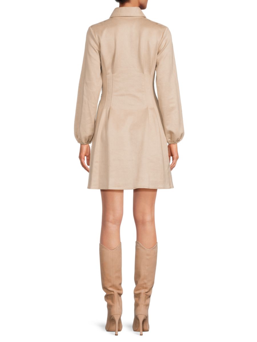 Kensie предлагает платье-рубашку А-силуэта с отложным воротником, свободными рукавами и боковыми карманами для удобного повседневного ношения.