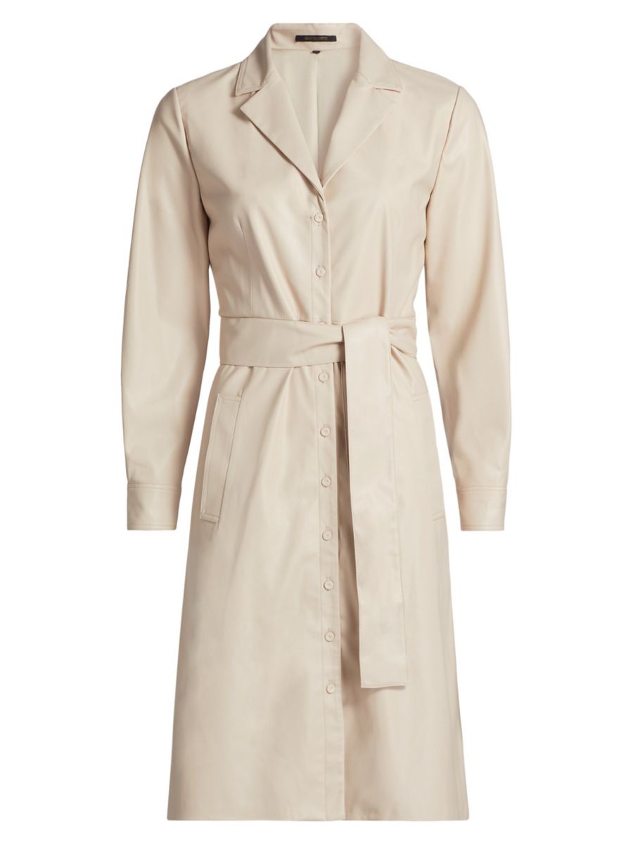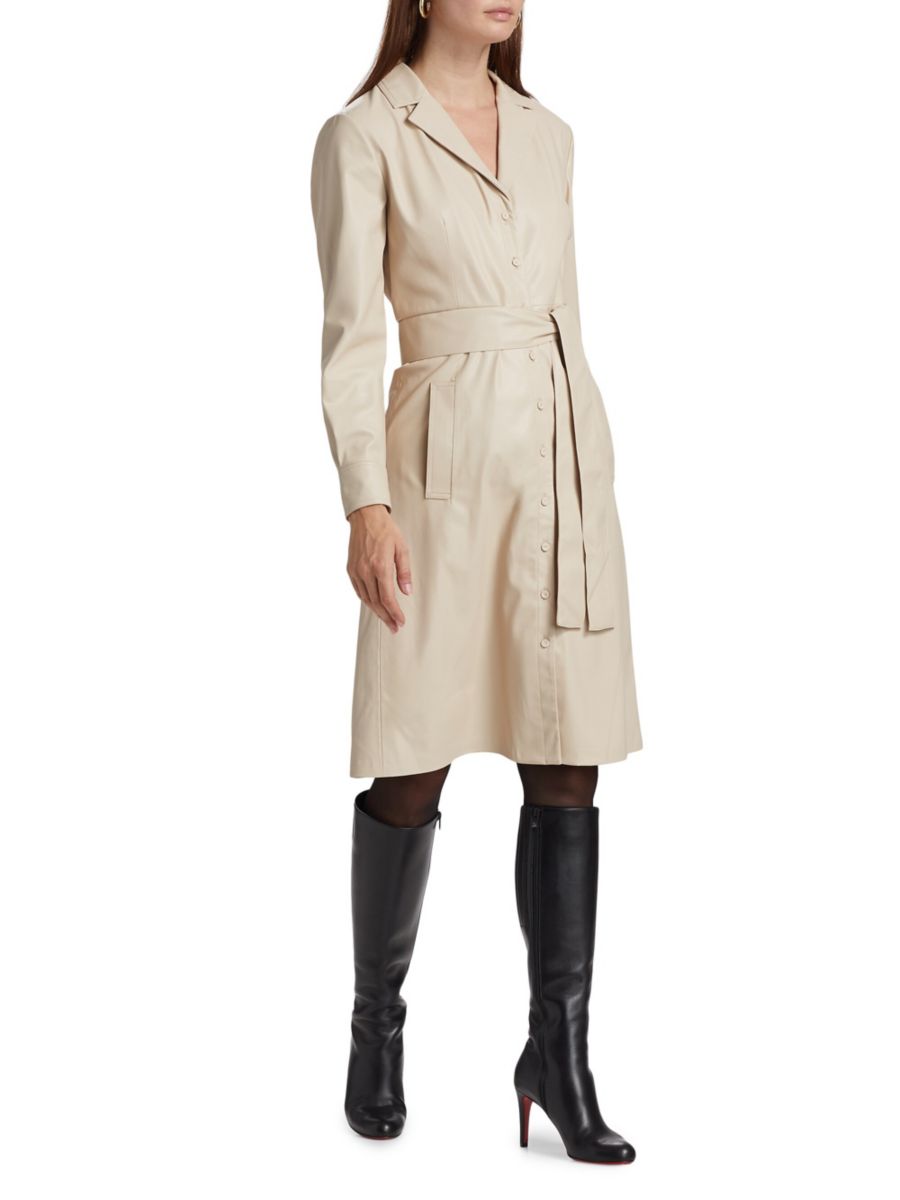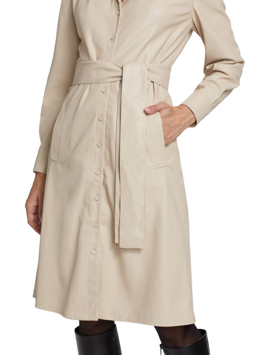 Платье-рубашка миди Dixie из искусственной кожи от Kobi Halperin имеет А-образный силуэт с завязывающимся поясом на талии.